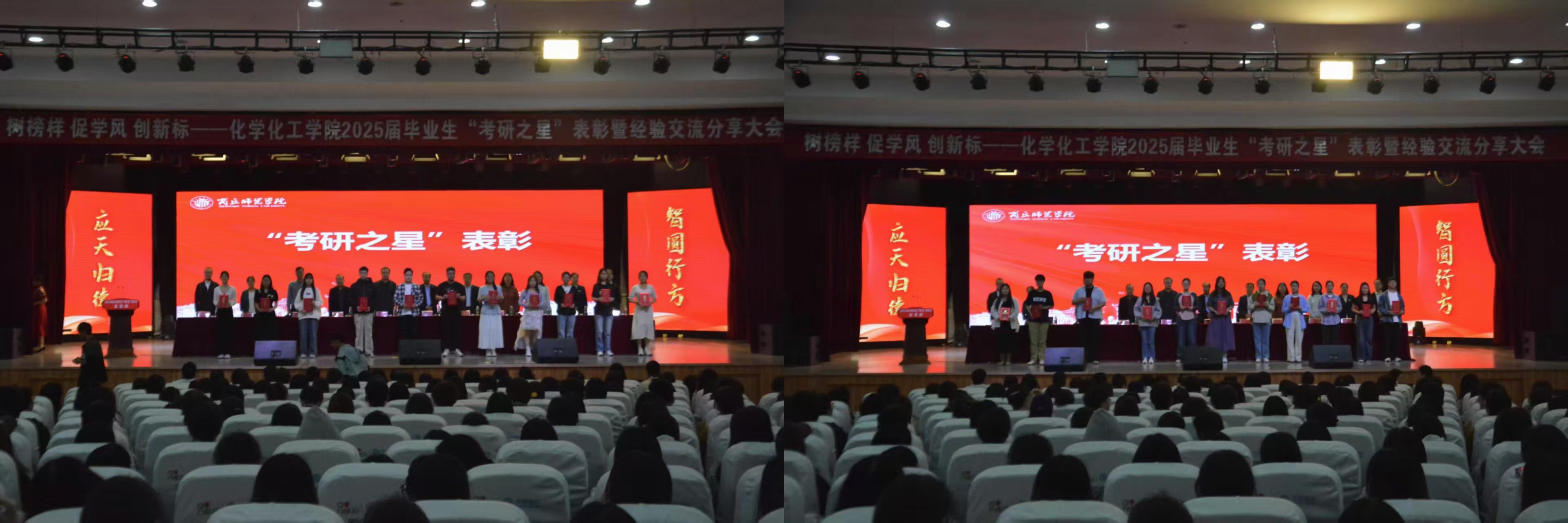 表彰大会在庄严的国歌声中拉开序幕。员工处处长韩坤首先宣读了化工公司关于表彰2025届毕业生“考研之星”及2025年“考研先进班集体”的决定。随后,主席台领导为“考研之星”代表和“考研先进班集体”代表颁奖。