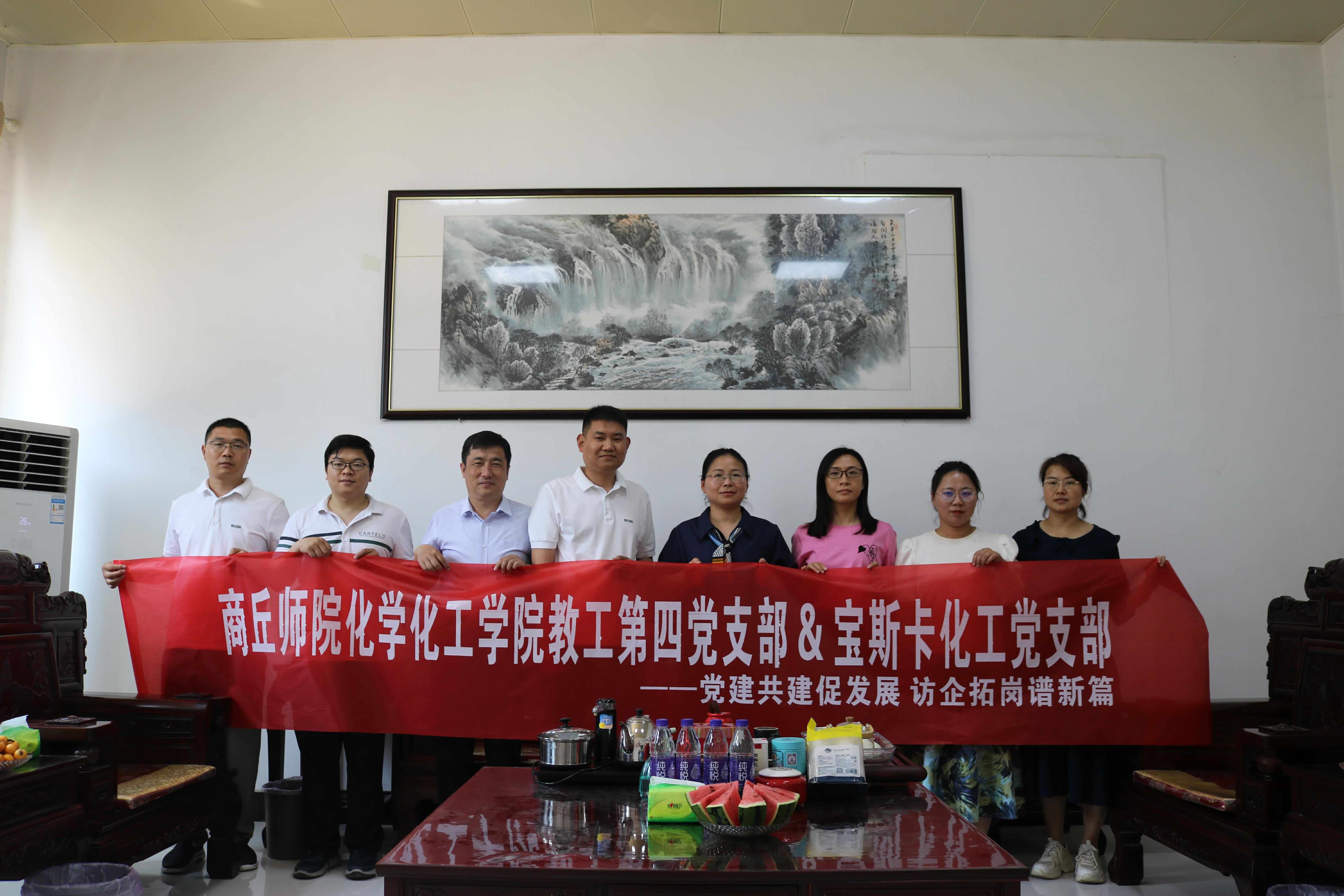 2025年5月20日,E8官网登录入口教工第四党支部在公司党委副书记张颜梅、党支部书记陈亚的带领下,一行5人赴宝斯卡(商丘)化工有限公司开展党支部共建仪式暨访企拓岗专项活动。双方围绕党建共建、产学研合作、人才联合培养及毕业生就业等核心议题展开深入交流,并签署共建协议,标志着校企协同创新迈入新阶段。