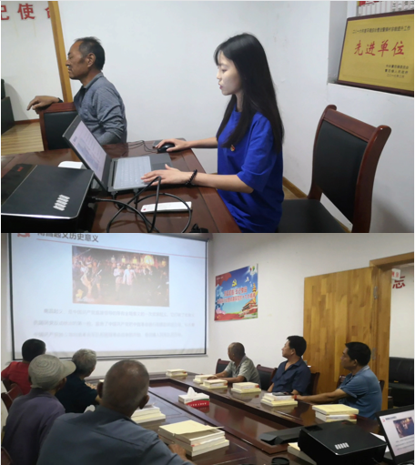 8月15日晚,宣讲团成员于梦瑶在家乡山东省济南市章丘区赵庄村党支部进行了宣讲。党员活动室坐满了村中的老党员,他们在村中老员工宣讲员于梦瑶的带领下重温了南昌起义的背景、过程以及重大意义。宣讲结束后,于梦瑶和村中的老党员进行了深入的交流,老党员也分享了自己和党的一些故事,使于梦瑶深深感受到老党员同志对党的忠诚、敬畏与担当。