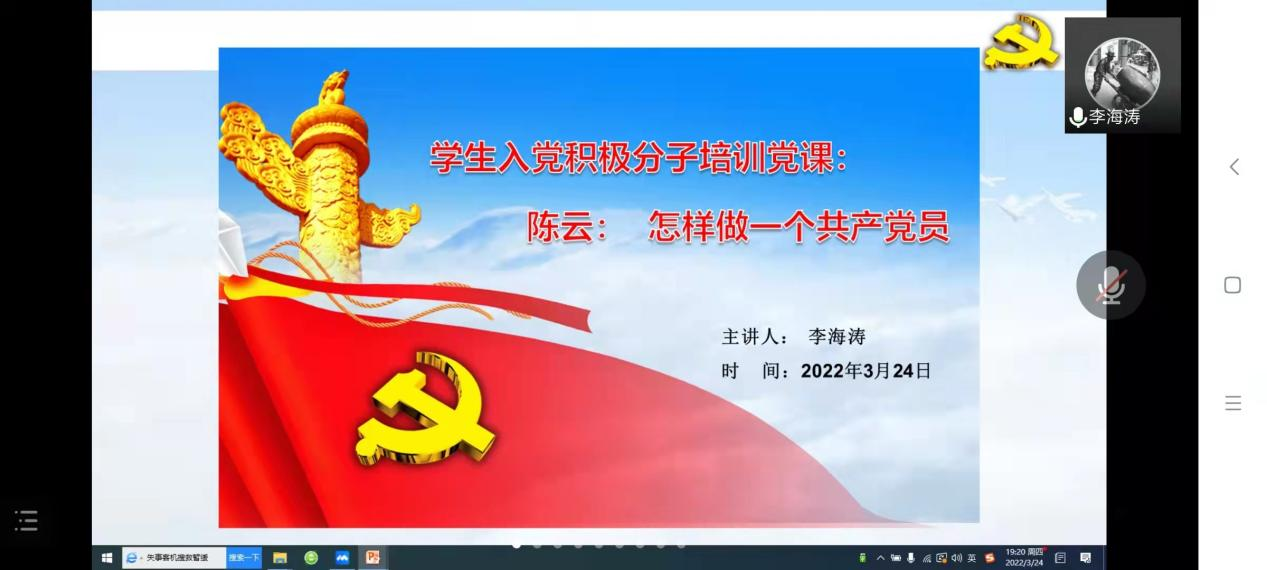 为帮助入党积极分子明确入党目的,端正入党动机,3月24日,E8官网登录入口利用腾讯会议举行以“陈云:怎样做一个共产党员”为主题的入党积极分子党课培训,由公司党委书记李海涛主讲,全体入党积极分子参加。