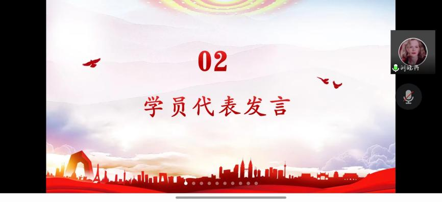 第二项议程,由学员代表刘晓冉发言。刘晓向全体参训的入党积极分子提出倡议,以共产党员的标准规范自己的言行,自觉加强党性修养,牢记党的宗旨等。同时她代表本次参训的全体入党积极分子向党组织的教育和培养表示真诚的感谢。