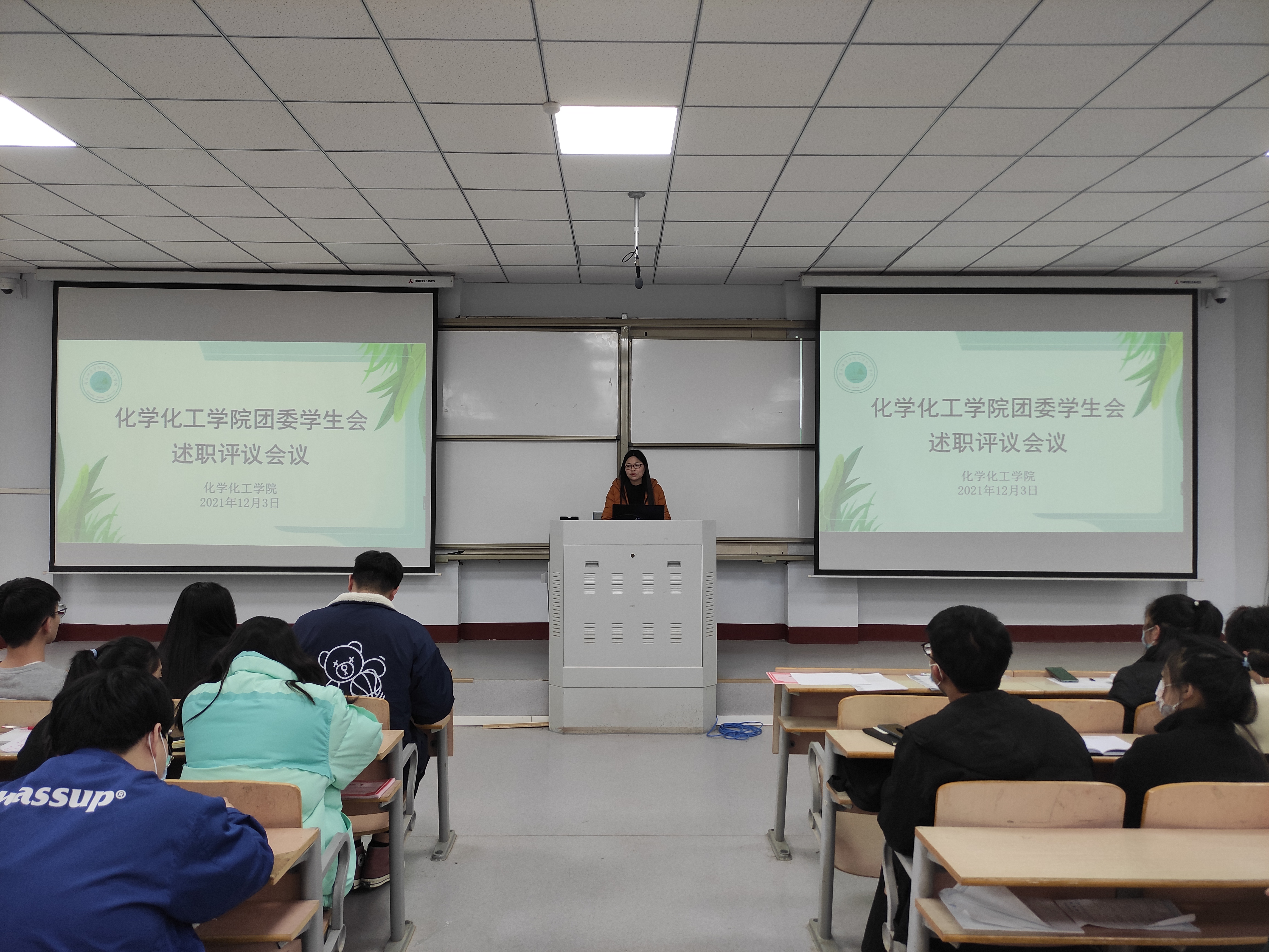 12月3日下午,E8官网登录入口团委于睢阳校区1号教学楼308教室召开了员工会述职评议会议,院团委副书记郭家瑞、学工办副主任史展、19级辅导员李宁娅出席,团委·员工会全体人员参加此次会议。