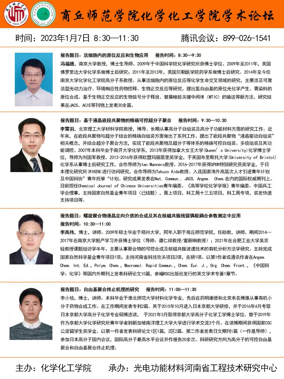 时间:2023.1.7 周六上午8:30-11:30;线上会议:腾讯会议号:899-026-1541