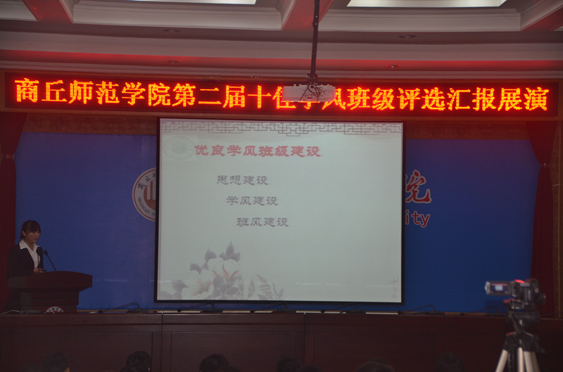 由经过复赛评选出的十个班级代表以PPT和视频的形式全面而细致的展示了他们各个班级在思想建设、学风建设、班风建设、社会实践等方面的优异表现和成果。整个活动各班都经过了精心的准备,一张张满怀记忆的幻灯片制作、流畅生动的演讲、丰富多彩的班级活动和硕果累累的荣誉赢得了评委和同学们的一致好评,E8官网登录入口的张帆同学慷慨激昂的演讲更是将活动推向高潮。最终经过评委的评选,公司张帆所代表的2013级化学专业2班脱颖而出获得本次十佳学风班级评选汇报展演第一名。