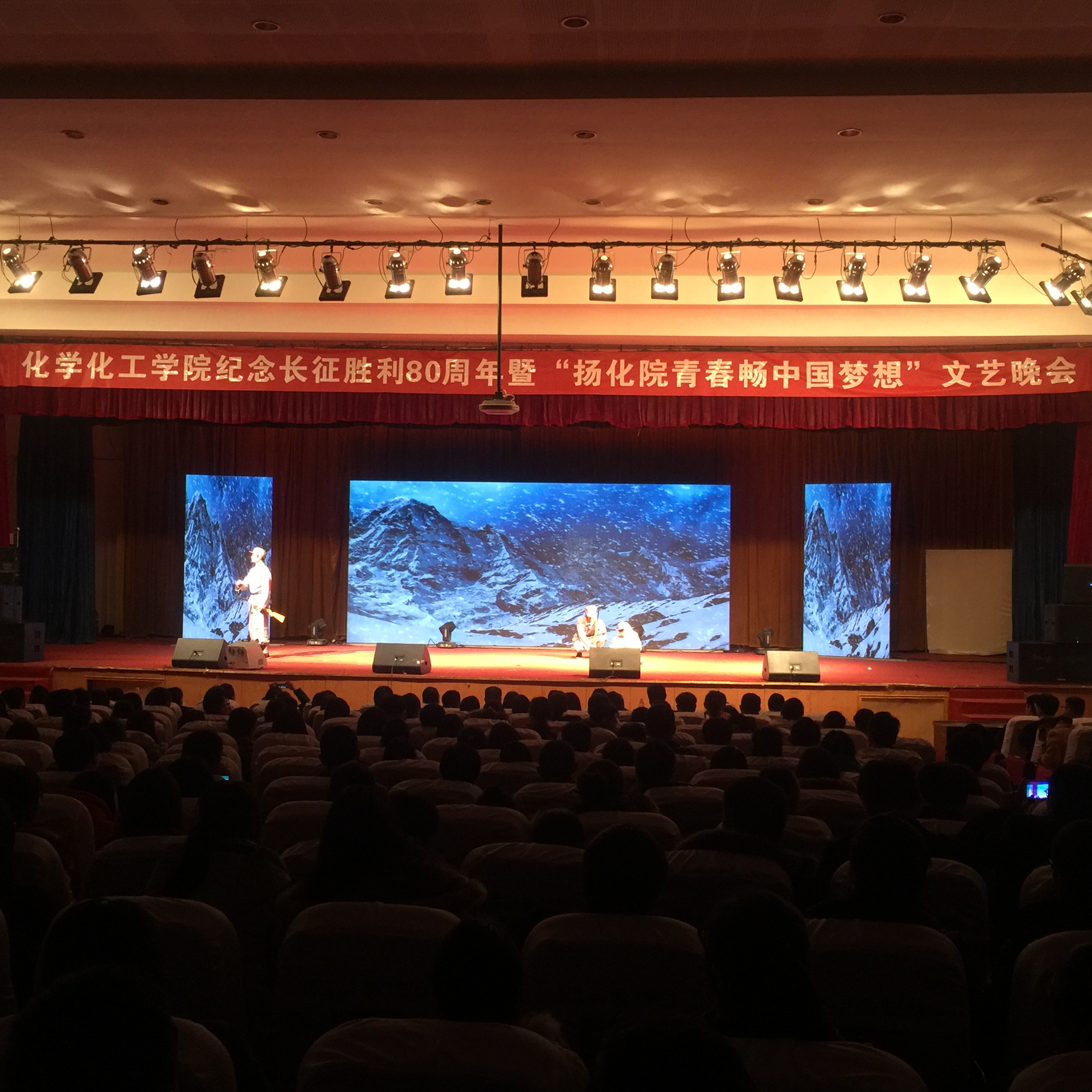为纪念长征胜利80周年,展示老员工青春洋溢的风貌,12月2日晚,E8官网登录入口在文化路校区大礼堂举办了以“纪念长征胜利80周年暨扬化院青春,畅中国梦想主题文艺晚会。校团委书记杨莹莹、员工处处长王晓征、后勤服务中心主原公司党总支书记邱友良、发展规划处处长原E8官网登录入口副经理翟滨、电子电气工程公司党总支书记姚晓慧、生物与食品公司党总支书记闫永峰出席此次晚会,公司全体领导、部分教师、国培学员以及公司近800名员工共同观看了晚会。