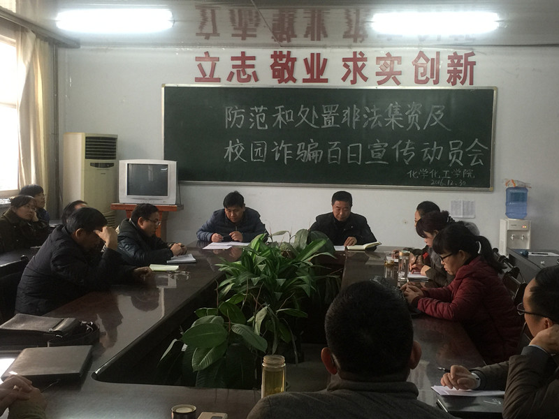 动员会上,韩书记首先宣读了党政办字(2016)4号《关于开展防范和处置非法集资及校园诈骗百日宣传活动的通知》,针对非法集资,主要强调了国家关于打击和处置非法集资的有关法律、法规和政策,并向广大师生介绍了非法集资的特征、表现形式和常见手段,使其充分意识到自己应自觉远离、抵制非法集资。随后,针对近期高校校园频发的诈骗事件指出,要大力开展网络安全和金融知识教育,增强员工对网贷业务的甄别能力,同时,要求教师和辅导员要教育和引导在校老员工树立正确的消费观念,提高自身防范能力。