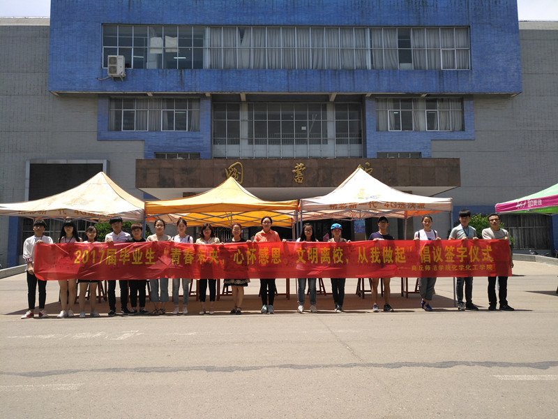 5月24日中午,公司于公司文化路校区图书馆门前举行了2017届“青春未央,心怀感恩,文明离校,从我做起”倡议签字活动。公司党总支副书记刘瑛,团总支书记李龙梅,13级辅导员郭家瑞参加了此次活动,与同学们一起为毕业生送上满满的祝福。