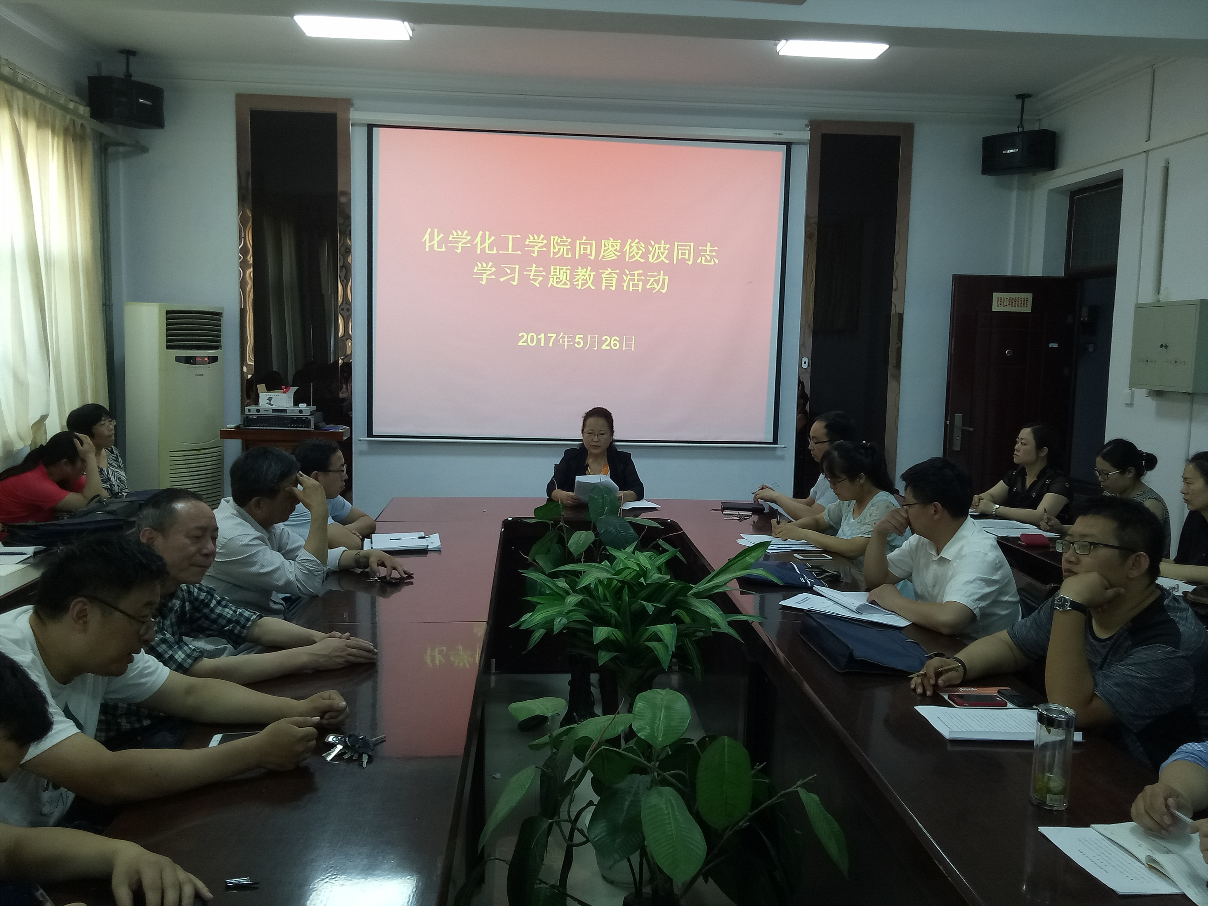 5月26日下午,E8官网登录入口在7号楼一楼院会议室开展向廖俊波同志学习专题教育活动,公司党总支副书记刘瑛、副经理孟团结、周艳丽及全体教职工参加了活动,活动由党总支副书记刘瑛主持。