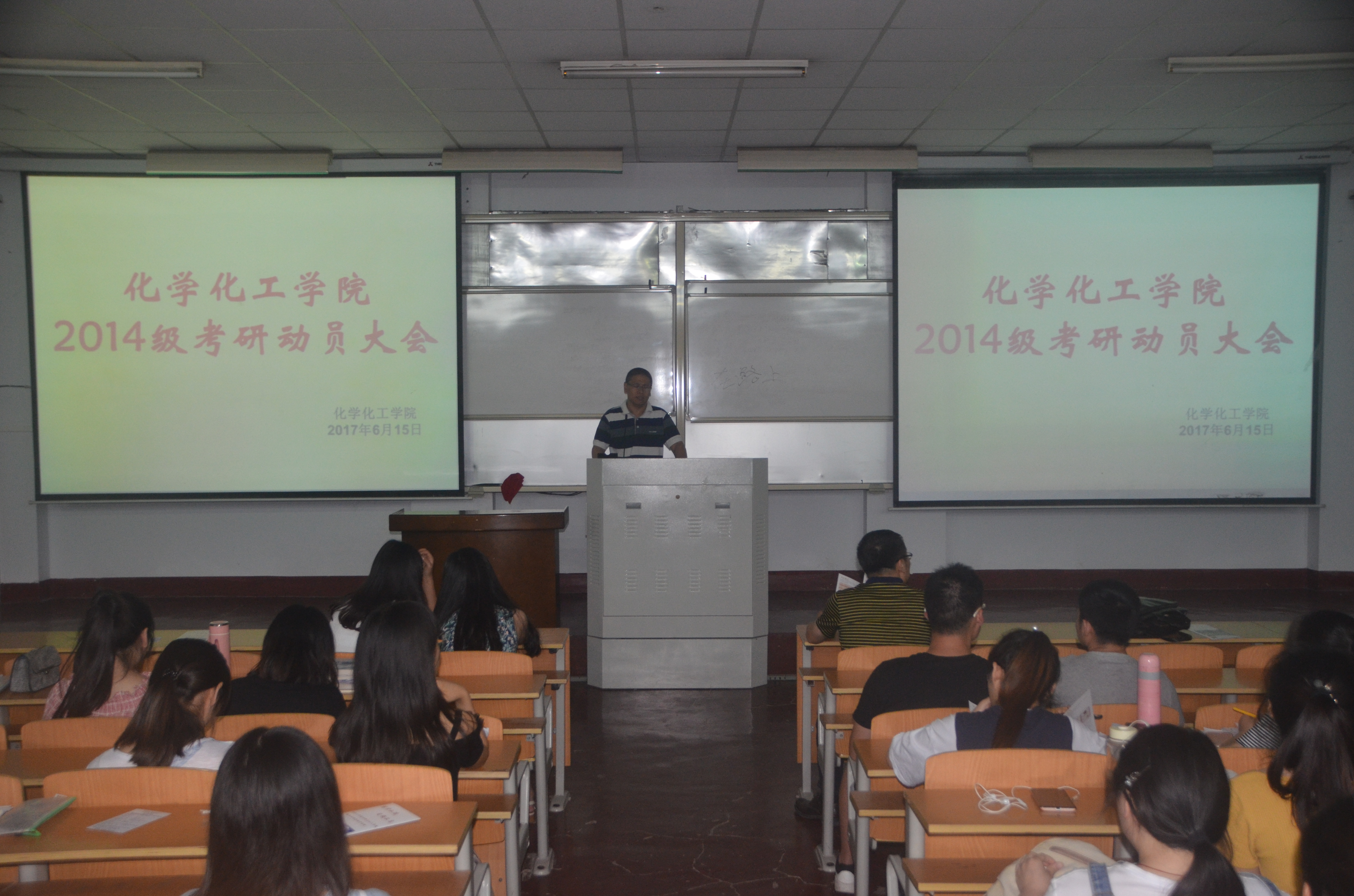 6月15日晚,公司于公司文化路校区1#208教室召开了“2014级考研动员大会”,公司经理瞿鹏、党总支副书记刘瑛、副经理孟团结出席了此次会议,公司有意向考研的同学参加了会议。
