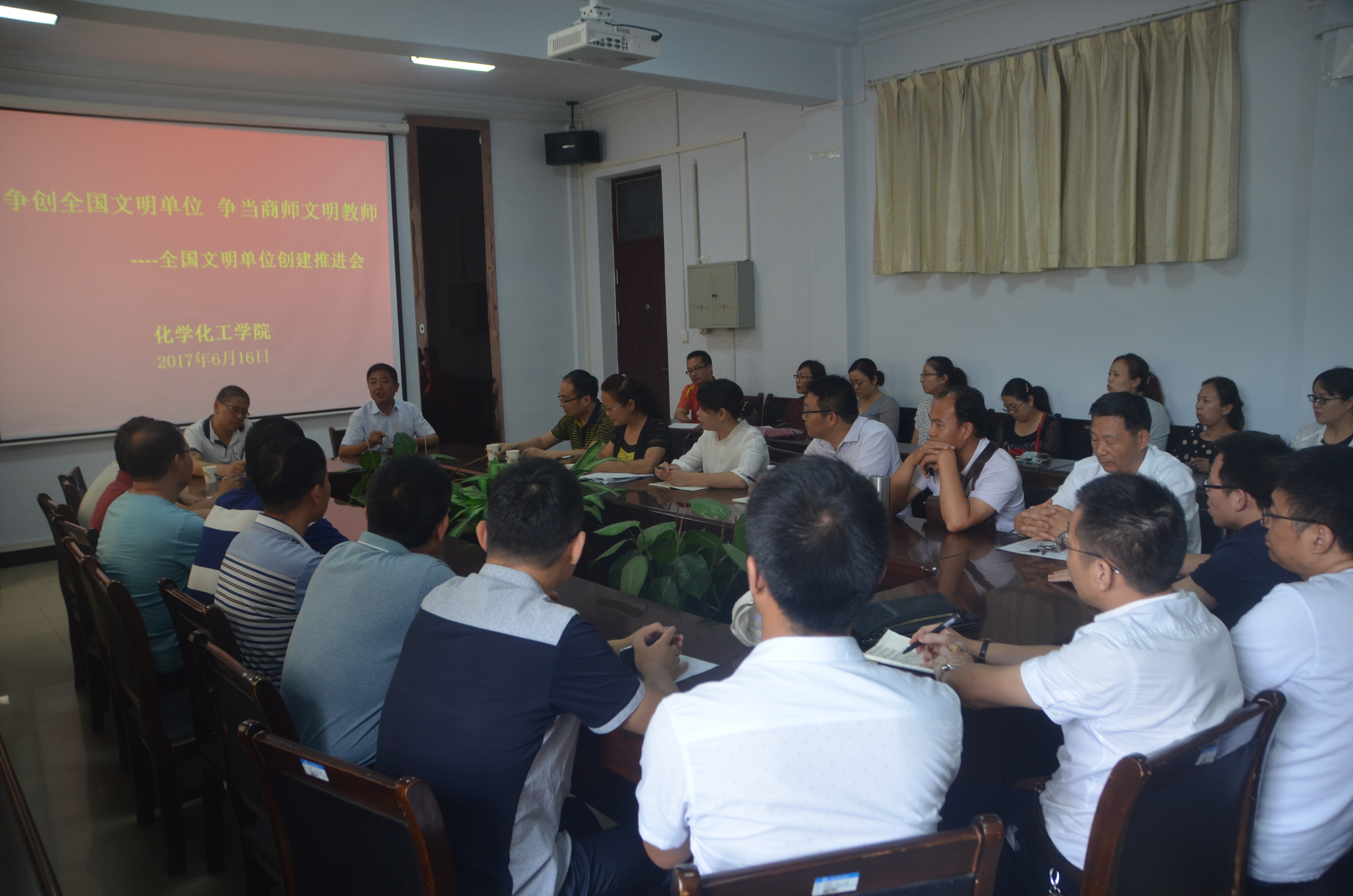 为了进一步优化育人环境,加强公司文明单位建设,6月16日下午,公司于公司文化路校区7号楼会议室召开了“争创全国文明单位,争当商师文明教师”全国文明单位创建推进会,公司党总支书记韩忠民、经理瞿鹏、党总支副书记刘瑛、副经理孟团结出席了此次会议,公司全体教师参加了此次会议,会议由韩忠民书记主持。