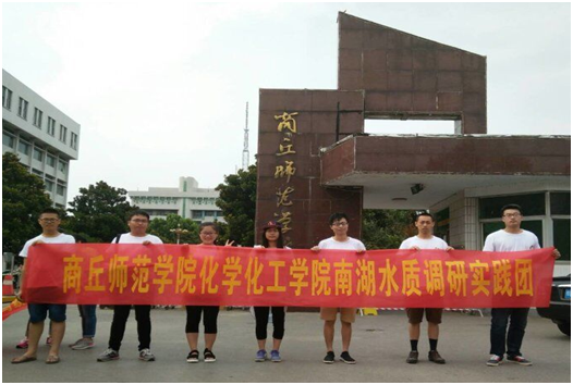 2017年7月4日早上七点,南湖水质调研团全体成员在E8官网登录入口文化路校区北门处集合完成,统一乘坐56路公交车前往商丘南湖。7:40团队穿过了整个商丘古城,从南城门出来,到达了商丘南湖南侧湖边。