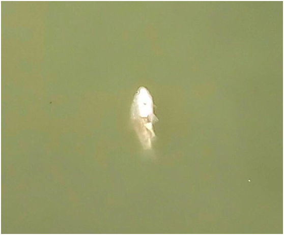 队员们在南湖的沿岸自己仔细观察了一番,可能是早晨的原因吧,在靠近湖岸的有一些地方,我们能够清晰的闻到一些腥臭味在空气中弥漫。经过队员的仔细分辨确定这个腥臭味应该是湖中的鱼死掉以后腐烂而散发出来的,果然,队员们在一些沿岸处找到了一些死鱼漂浮在水边,事实证明,南湖的水中确实存在一些问题。