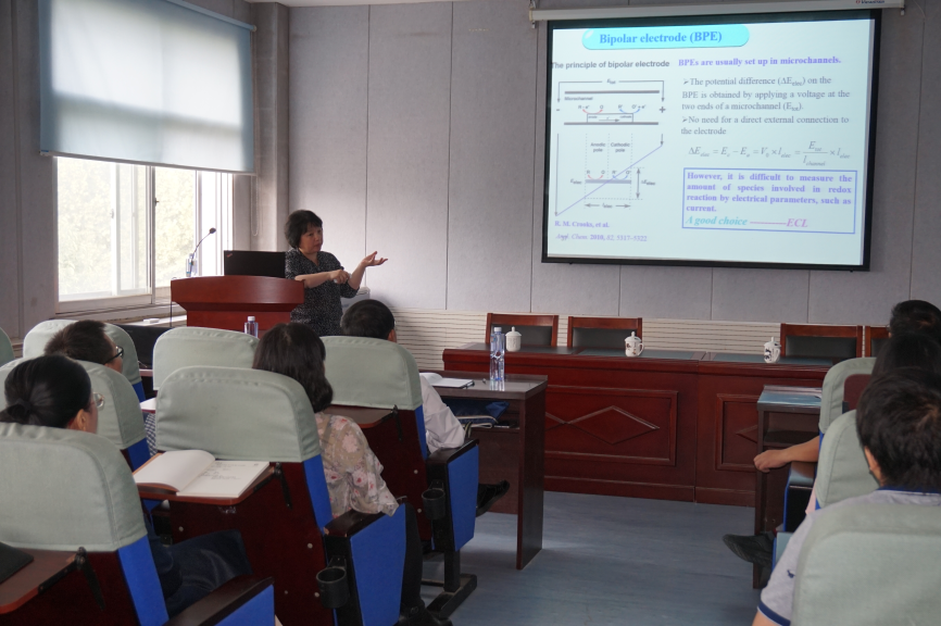 聘任仪式结束后,徐静娟教授在文化路校区化学实验楼311学术报告厅为E8官网登录入口师生作了题为《电致化学发光分析新方法研究》的学术报告,报告会由E8官网登录入口经理瞿鹏主持。报告会上,徐静娟首先简要介绍了电致化学发光的基本原理、特点与应用。接着徐教授从纳米晶表面态、电极基底材料及共反应剂的构建与选择;电极电化学反应的引入;光辐射-共振能量体系的应用三方面结合自己课题组的相关研究工作,对高效新型的电致化学发光检测体系的构筑进行了系统的阐述。最后,徐教授介绍了自己课题组在比率式电致化学发光生物分析方面的最新研究进展。徐教授的报告系统严谨,讲述生动清晰,对公司E8官网登录入口相关老师的研究工作具有重要的指导与启迪意义。随后,徐静娟教授还与部分老师进行了互动交流。