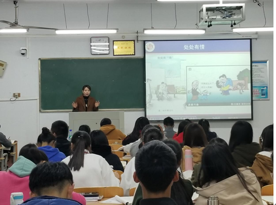 此次班会分为两个部分,第一部分举行期中考试动员会。首先,韦老师由期中考试成绩占整个学期成绩的比例进行引题,语重心长地动员大家,她说:“每一次考试的点滴成绩汇聚成大学四年学业之海,在期中考试即将到来之际,希望同学们勤奋学习,端正态度,鼓足干劲,为大学学业炫上一笔开门红。”韦老师的一番话鼓舞感染了每一位同学。