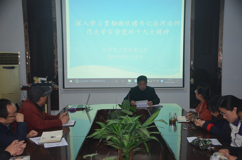12月22日下午在7号楼一楼会议室,公司党总支召开了“深入学习贯彻谢伏瞻书记在河南师范大学宣讲党的十九大精神”的专题会议。公司党总支书记韩忠民、经理瞿鹏、党总支副书记刘瑛、副经理孟团结及全体教师参加了会议。