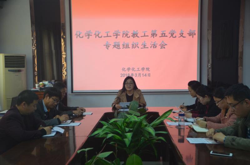 3月14日下午,E8官网登录入口教工第五党支部召开了2017年度专题组织生活会并进行了党员民主评议,公司党总支书记韩忠民、副书记刘瑛及支部全体成员参加了会议。会议由支部书记李龙梅同志主持。