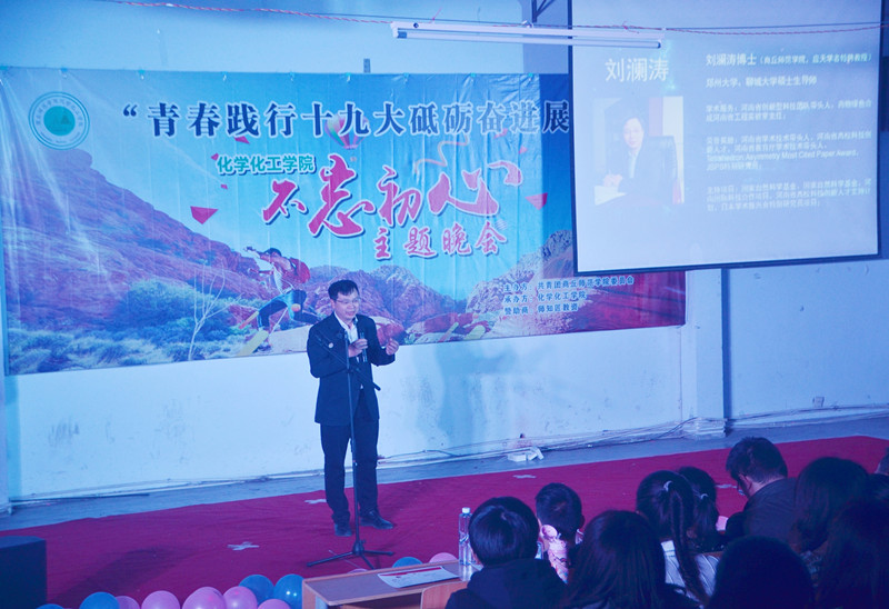 刘澜涛博士开启晚会第二篇章《逐梦之路》,结合着自身经历分别从考研、择业等方面给同学们解疑答惑,也为未来的发展指明了方向。动听的歌曲串烧,活泼的身姿,幽默有趣的小品,无一不彰显同学们的青春活力,将晚会再一次的推向高潮。