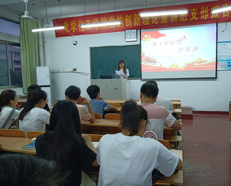 为了认真学习、宣传、贯彻习近平新时代中国特色社会主义思想和党的十九大精神,扎实推动党的创新理论成果深入人心。6月4日晚上七点半,E8官网登录入口于文化路校区1号教学楼405教室举办“党的创新理论宣讲进支部”报告会,化工17-1、材料17-1班同学参加此次活动,本次报告会由团总支副书记王宇杰主持。