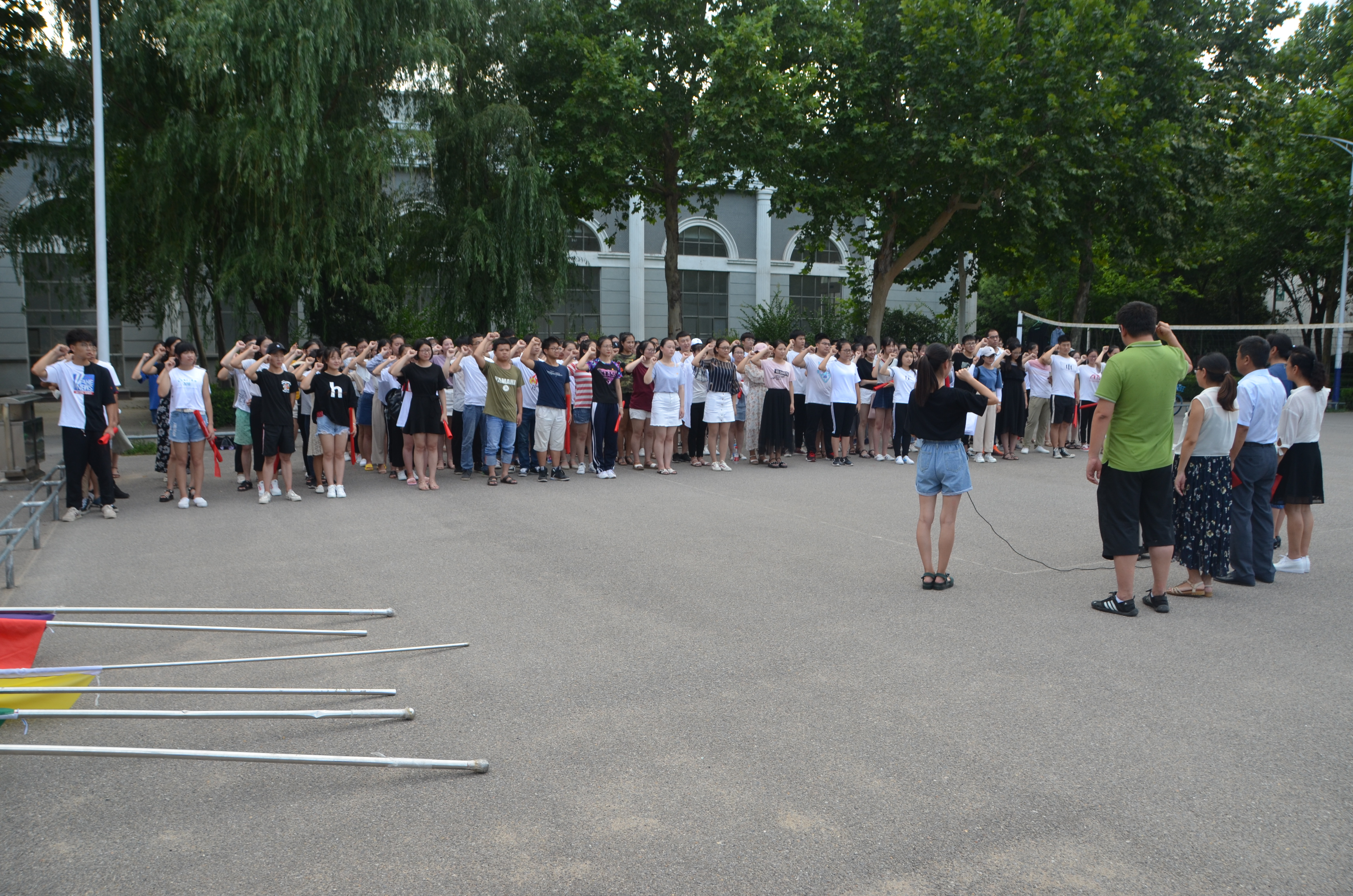 活动开始,刘瑛副书记发表讲话,并表示暑期“三下乡”是有意义的社会实践活动,它旨在把员工在公司学到的科技文化知识带到农村,为农村经济文化卫生事业的发展做出贡献。同时强调本次活动也是同学们提高社会实践能力的一个有效途径,希望参与活动的志愿服务团队能够秉着乐于奉献、脚踏实地的精神,圆满完成社会实践任务。接着,志愿者代表材料17-1班魏世民发言,李龙梅老师带领全体志愿者进行宣誓。随后,与会领导老师与各团队授旗。最后,韩忠民书记宣布活动正式启动,希望同学们积极践行十九大精神,自觉遵守团队纪律, 虚心向人民群众学习, 热情为当地百姓服务,努力提高自身素质,做出当代老员工应有的贡献!