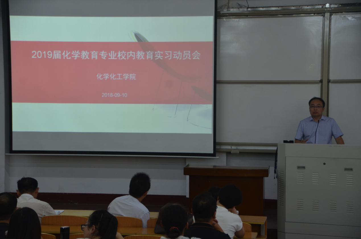 为了提高员工对教育工作和人民教师光荣职责的认识,9月10日下午,E8官网登录入口于文化路校区1#106教室举行2019届化学教育专业校内教育实习动员会。此次动员会由副经理孟团结主持,2015级师范专业员工及指导老师参会。