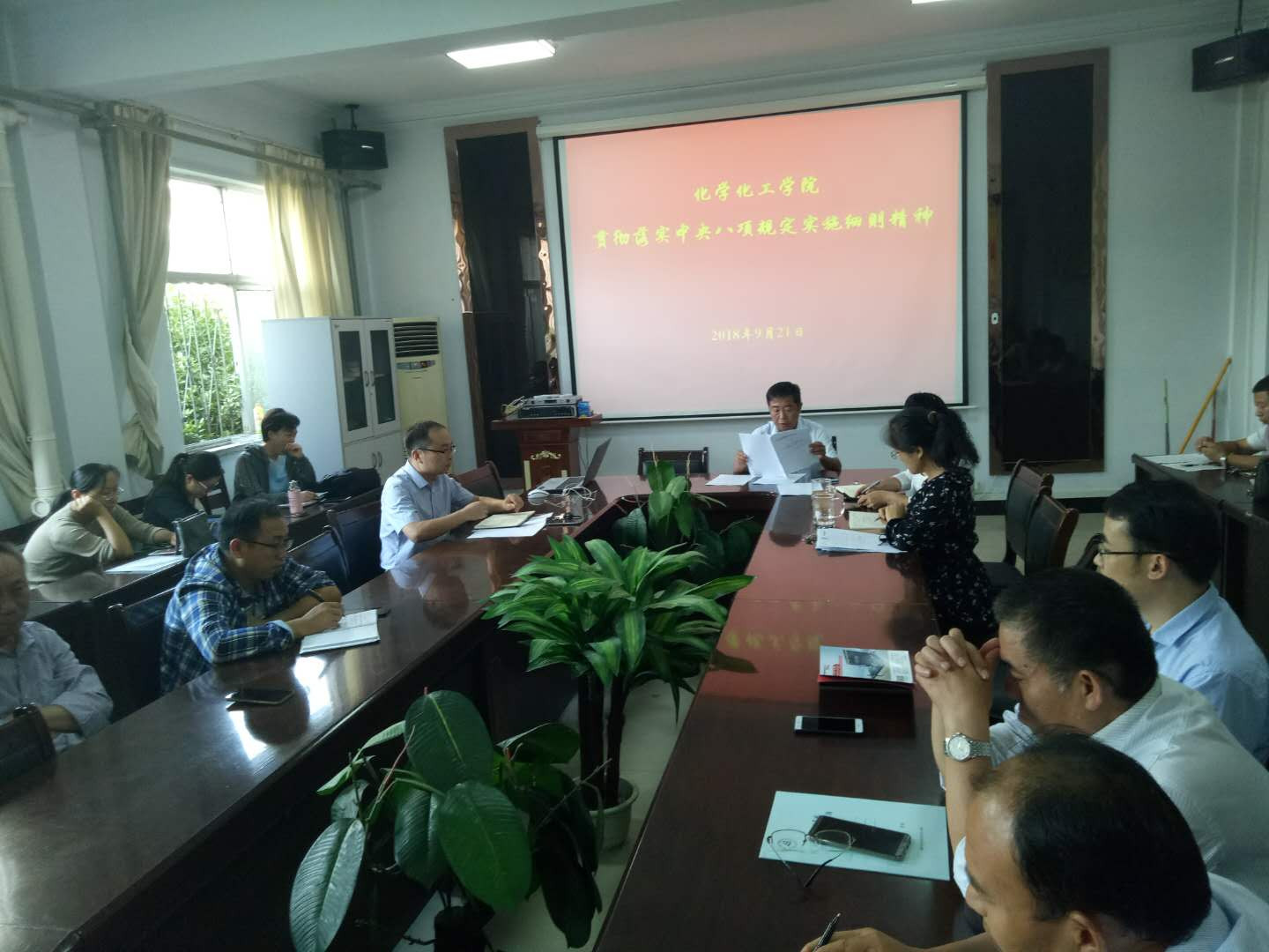 为认真贯彻执行中央八项规定及实施精神,9月21日下午,E8官网登录入口于文化路校区7号楼会议室召开学习《贯彻落实中央八项规定实施细则精神的办法》工作会议,会议由公司党总支书记韩忠民主持,全体教职工参加。