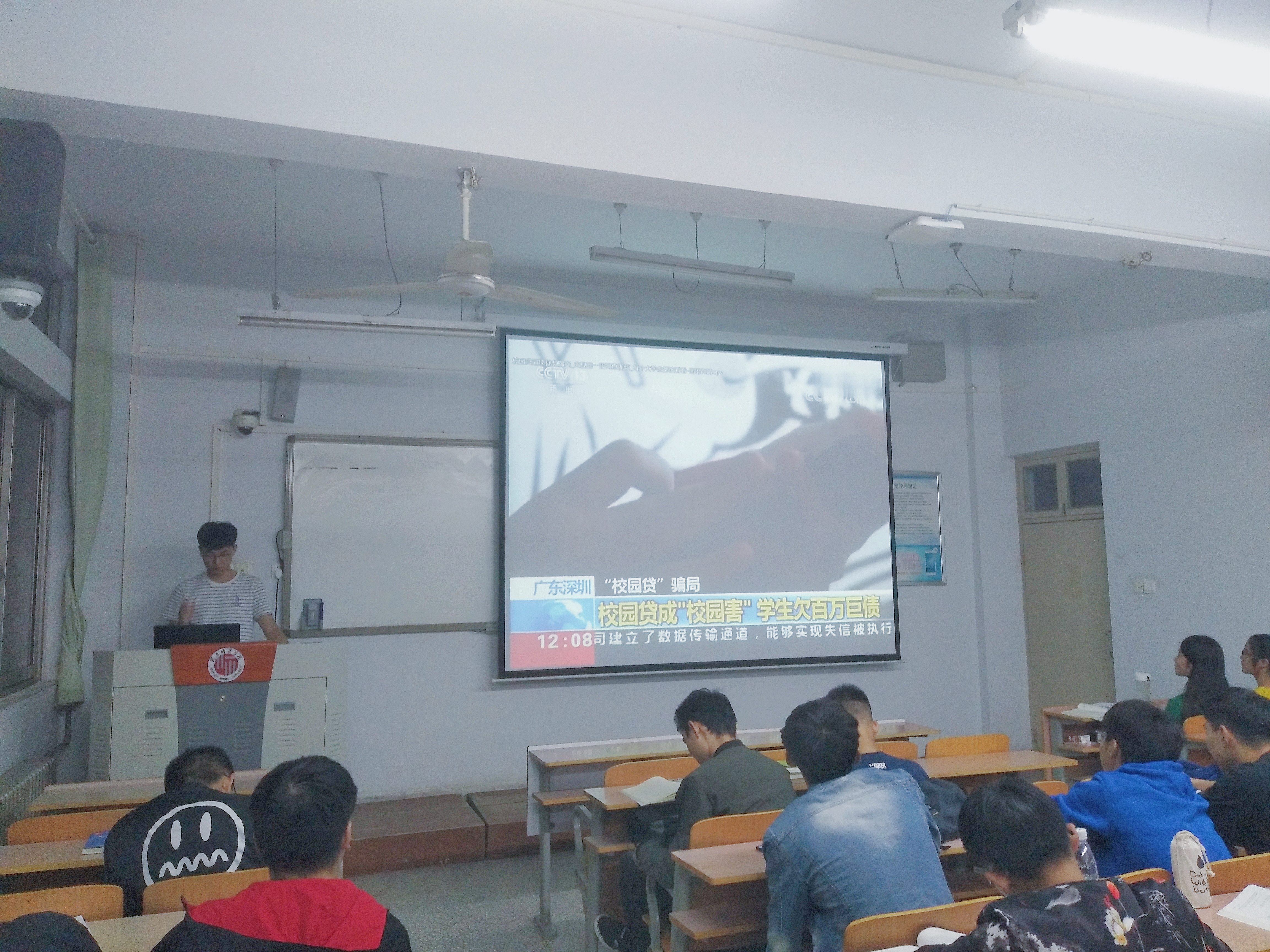 校园贷经常用“零门槛,无抵押”等虚假口号诱骗在校老员工透支信用、盲目消费。为让同学们远离校园贷,李远洋首先介绍了什么是校园贷以及校园贷的危害,希望同学们可以理清校园网贷现状。接着指出员工为什么会陷入校园贷中:一是缺乏必要的风险控制意识和机制。二是缺乏监管主体和必要的监管。三是缺乏必要的金融知识和正确的消费观。最后他带领同学们分析校园贷案例并组织收看了《郑先桥——校园网贷悲剧》。