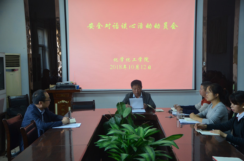 10月12日下午,E8官网登录入口于文化路校区7号楼会议室召开安全对话谈心活动动员会。会议由公司党总支书记韩忠民主持,副经理孟团结、周艳丽出席,全体教职工参加。