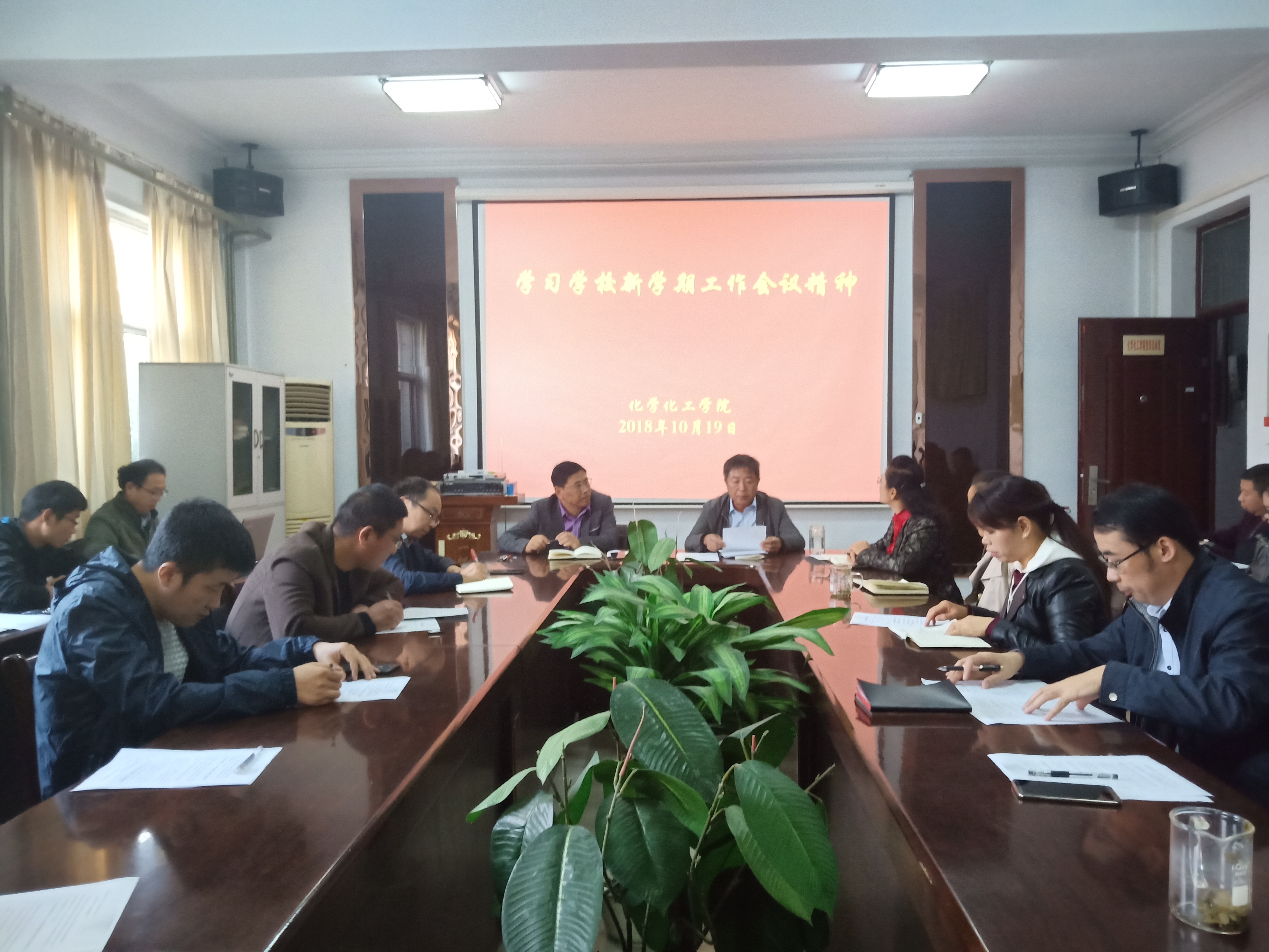10月19日下午,E8官网登录入口于睢阳校区7号楼会议室学习公司新学期工作会议精神,经理瞿鹏、党总支副书记刘瑛、副经理孟团结、周艳丽出席,全体教职工参加会议。会议由公司党总支书记韩忠民主持。