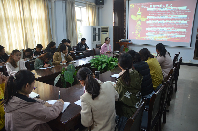11月8日,E8官网登录入口于睢阳校区7号楼会议室开展以“不忘初心跟党走,牢记使命勇担当”为主题的党的十九大精神学习会议,公司全体中级入党积极分子参与学习,党支部书记李龙梅主持学习。