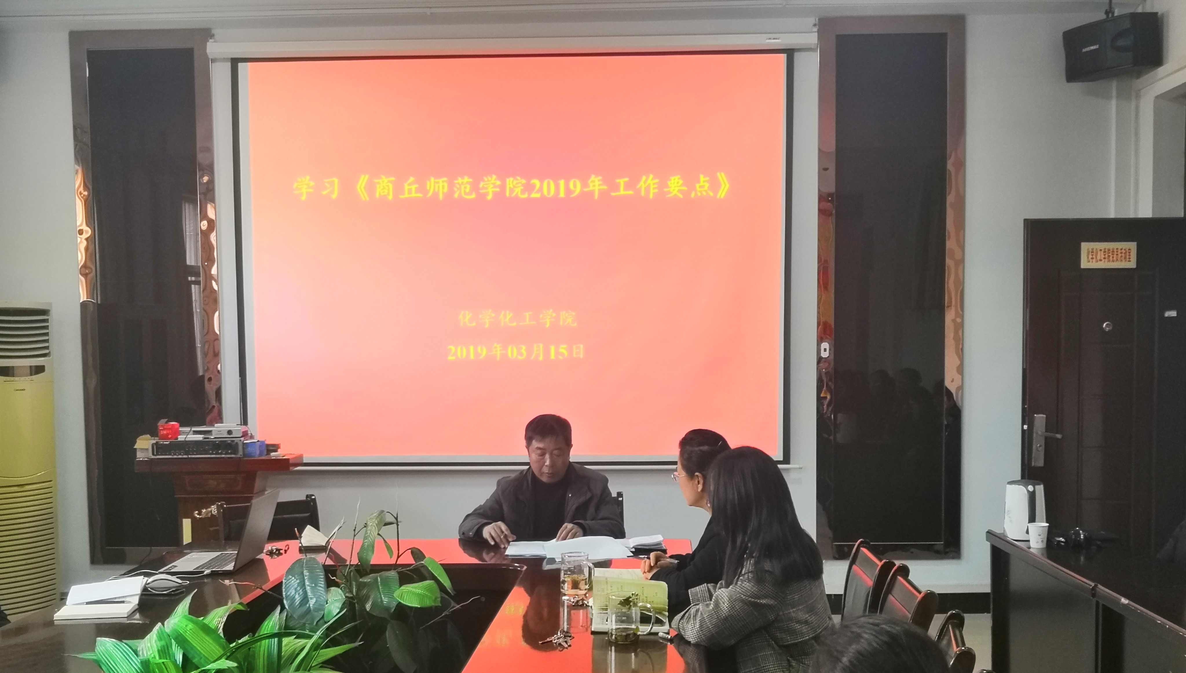 3月15日下午,E8官网登录入口于睢阳校区7号楼会议室召开全体教职工会议,传达并学习2019年工作要点。全体教职工参加,会议由党总支书记韩忠民主持。
