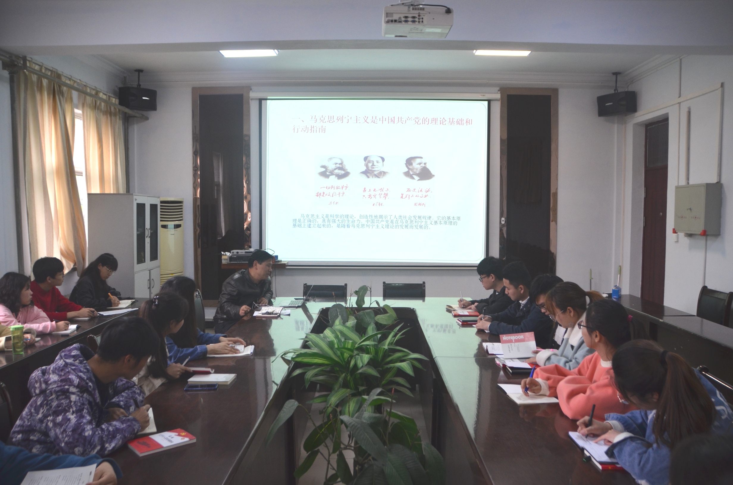 为了贯彻党的行动指南,践行党的理论方针,4月12日,E8官网登录入口于睢阳校区7号楼会议室进行入党积极分子中级培训系列主题党课第三讲“一脉相承、与时俱进——中国共产党的指导思想”。公司全体中级入党积极分子参加,经理瞿鹏主讲。