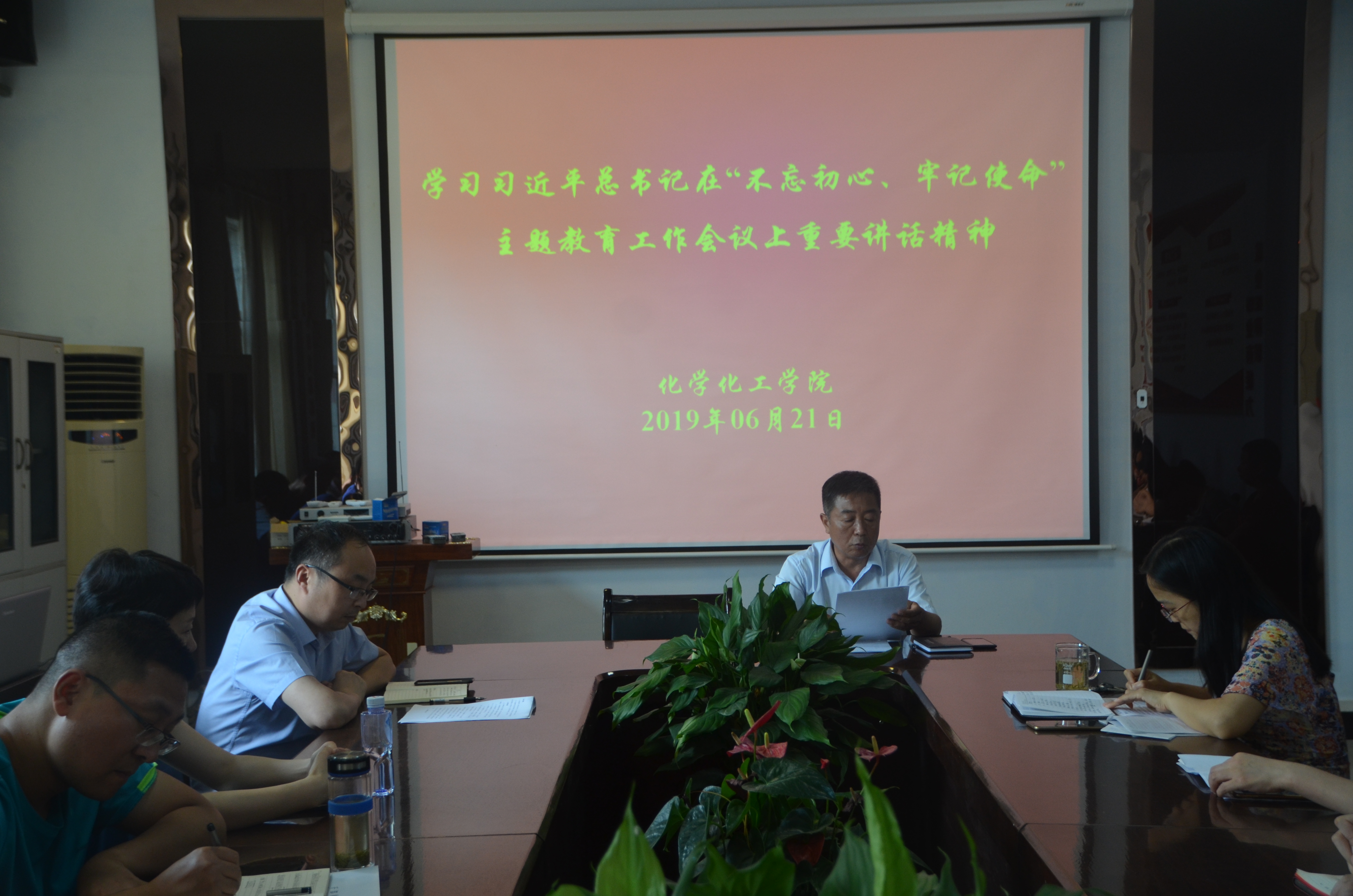 为了使中国共产党牢记初心使命,不断激励一代代中国共产党前赴后继、英勇奋斗,2019年6月21日,E8官网登录入口于睢阳校区7号楼会议室学习习近平总书记在“不忘初心、牢记使命”主题教育工作会议上重要讲话精神。全体教职工参加学习,会议由党总支书记韩忠民主持。