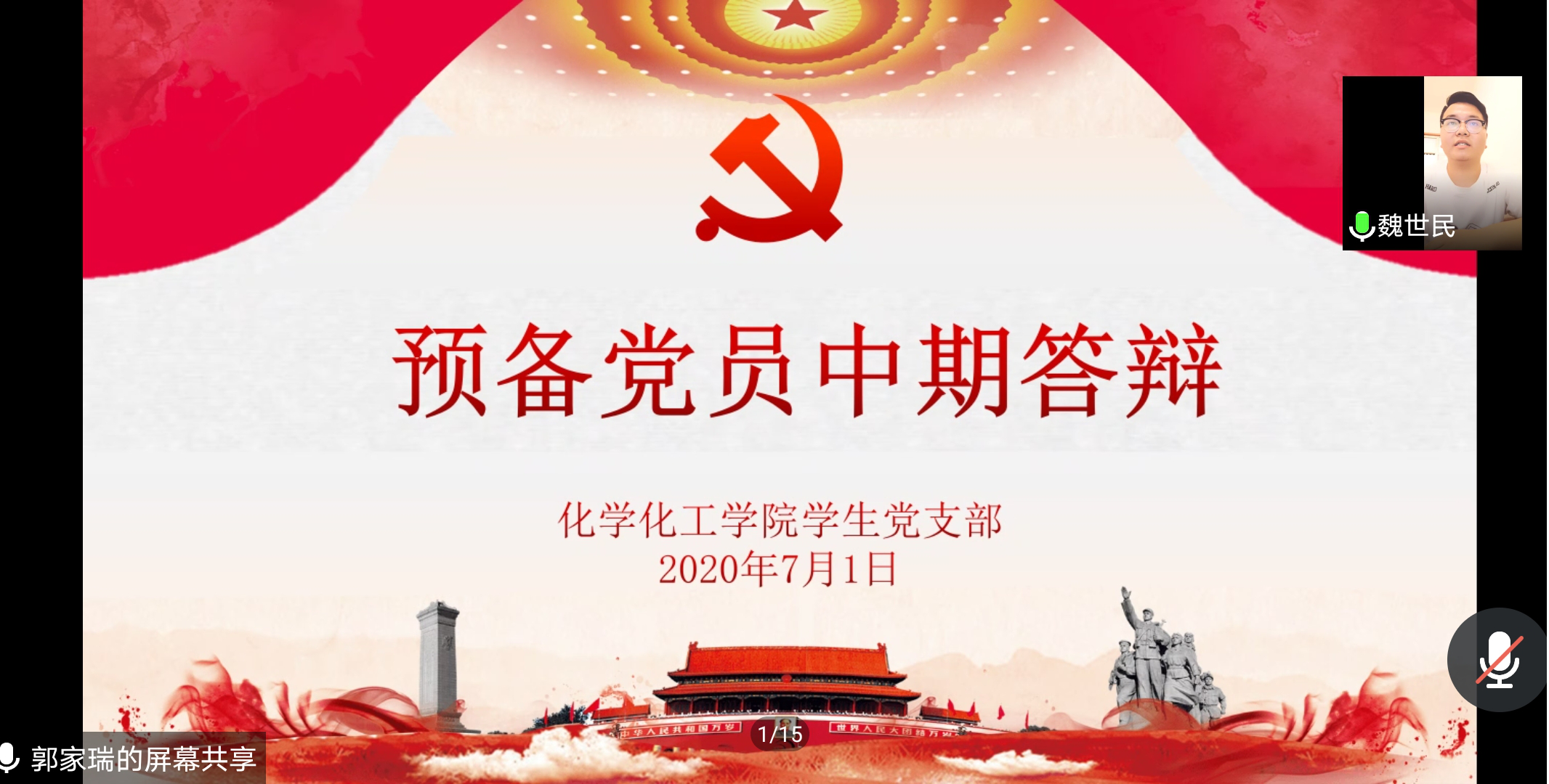 会议伊始,第11期预备党员进行个人答辩,他们从个人经历、入党动机、优点与不足等方面向党组织一一进行汇报,预备党员们利用答辩机会,通过答辩使党组织对其个人情况有了更深入的了解。个人陈述后,答辩评委根据学员具体情况进行了提问,学员们思路清晰,结合自身经历回答了评委的问题,充分展现出对党的理论知识的深刻理解和较强的思辨能力。之后,全体党员在线对答辩党员进行了评议。活动最后,本学期新接收的党员面对党旗进行宣誓,老党员重温入党誓词。