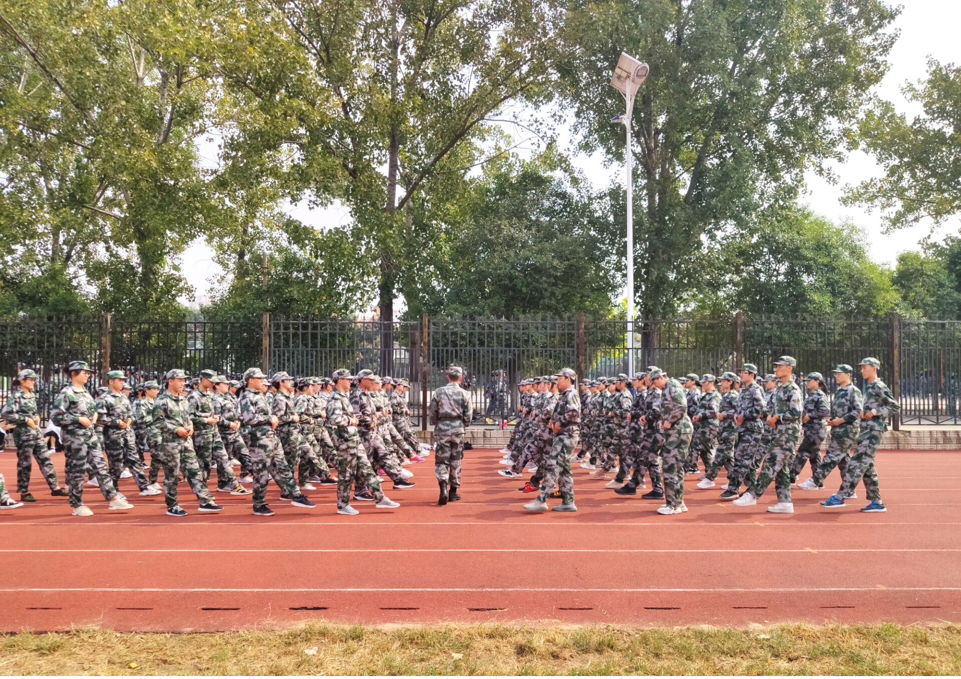 军训期间,操场上小耳铃们刻苦训练,英姿飒爽,在训练场上尽情展现老员工的青春活力和坚韧毅力。身着军装的商师学子,在艰苦训练面前从不低头,他们嘹亮的口号声声入耳,整齐的步伐久久难忘,成为商师一道亮丽的风景线。领导老师认真值班,关注新生们的身体状况,同时,不定时地去操场巡视,查看军训进度和训练情况,给予了新生们温暖和鼓舞。他们观摩了新生们的训练,与军训教官、年级辅导员进行了交流,并对军训过程中教官的严格训练、带训班主任和员工干部的辛勤付出以及同学们的刻苦训练给予充分的肯定。