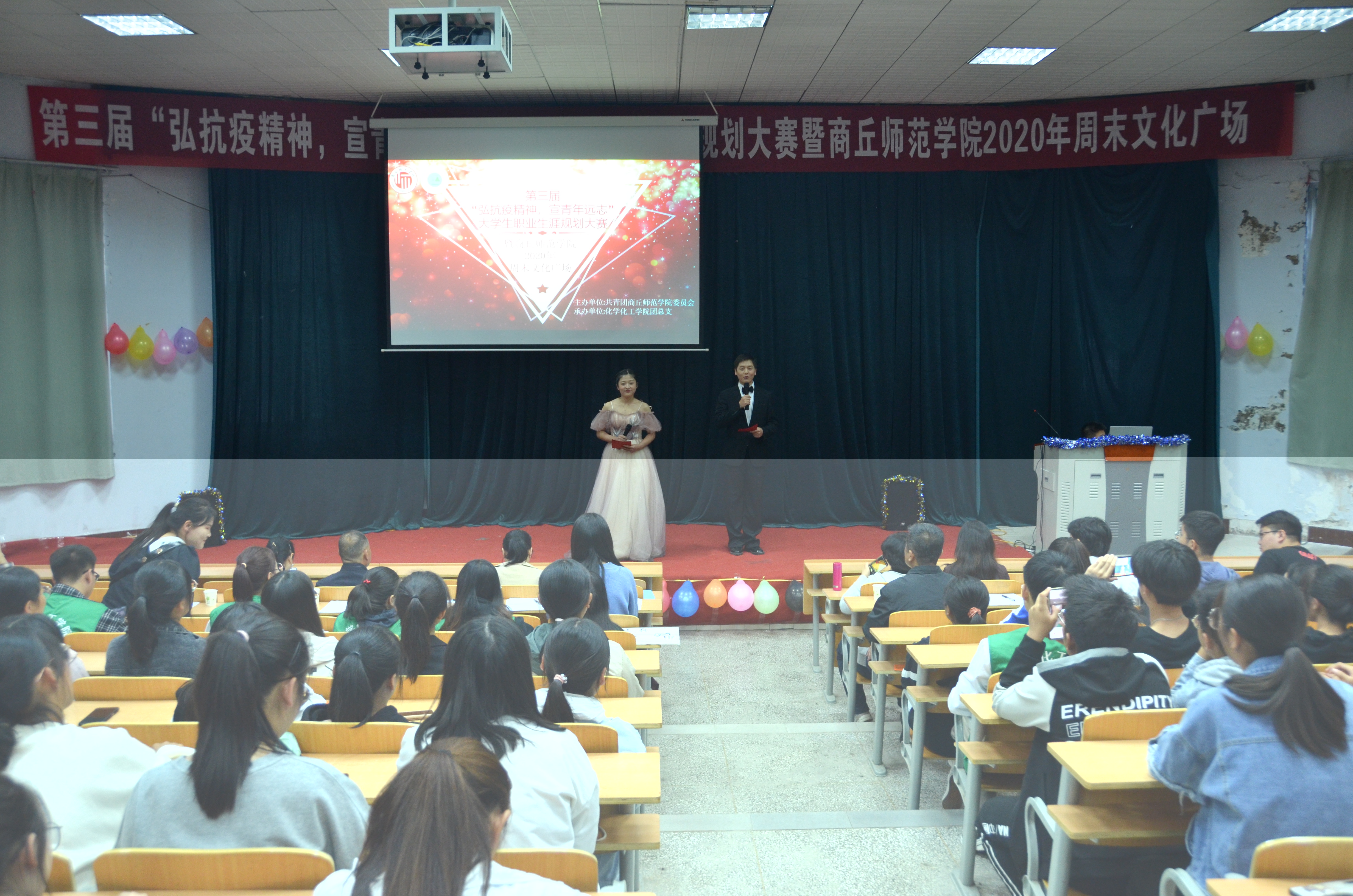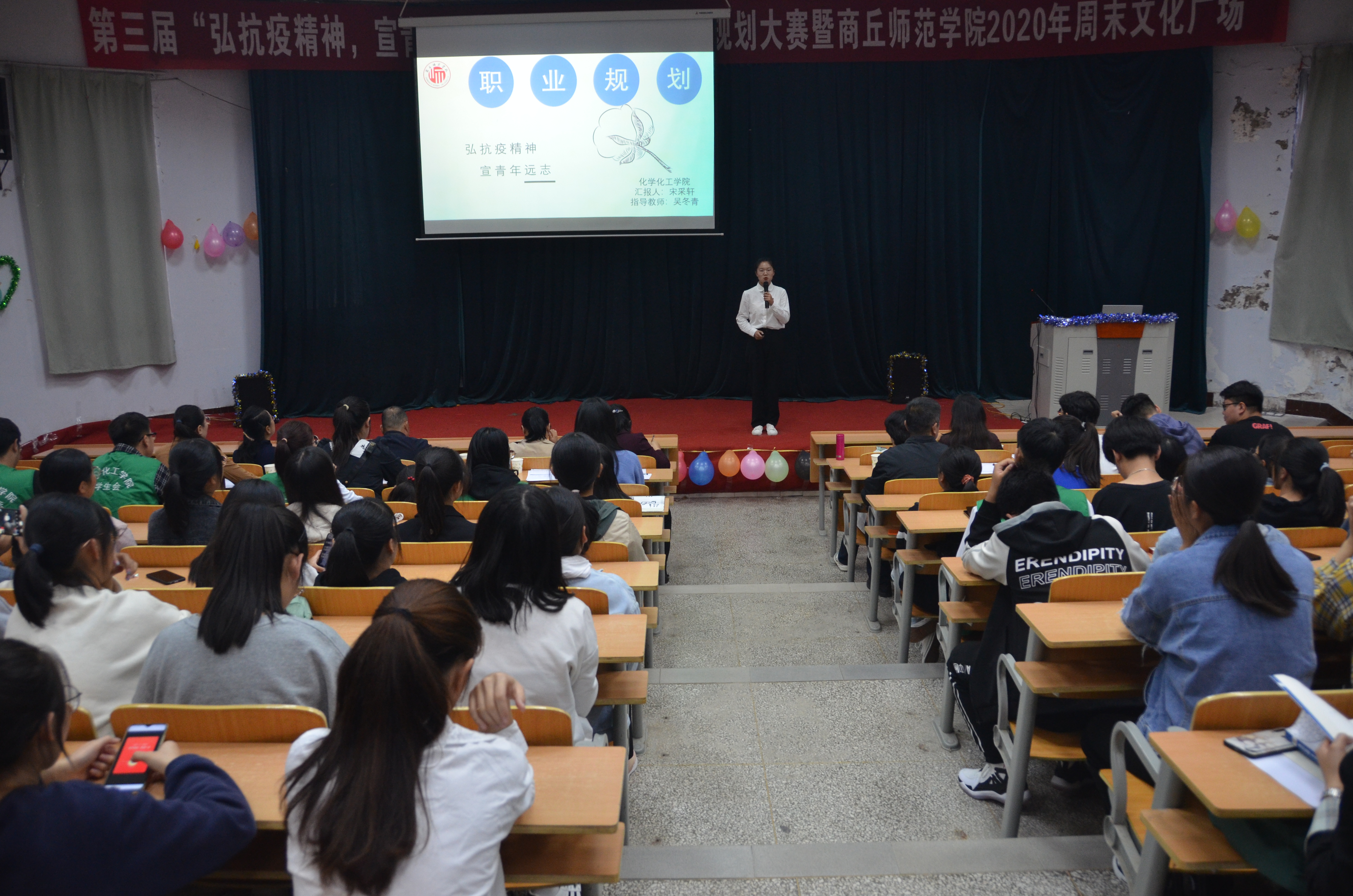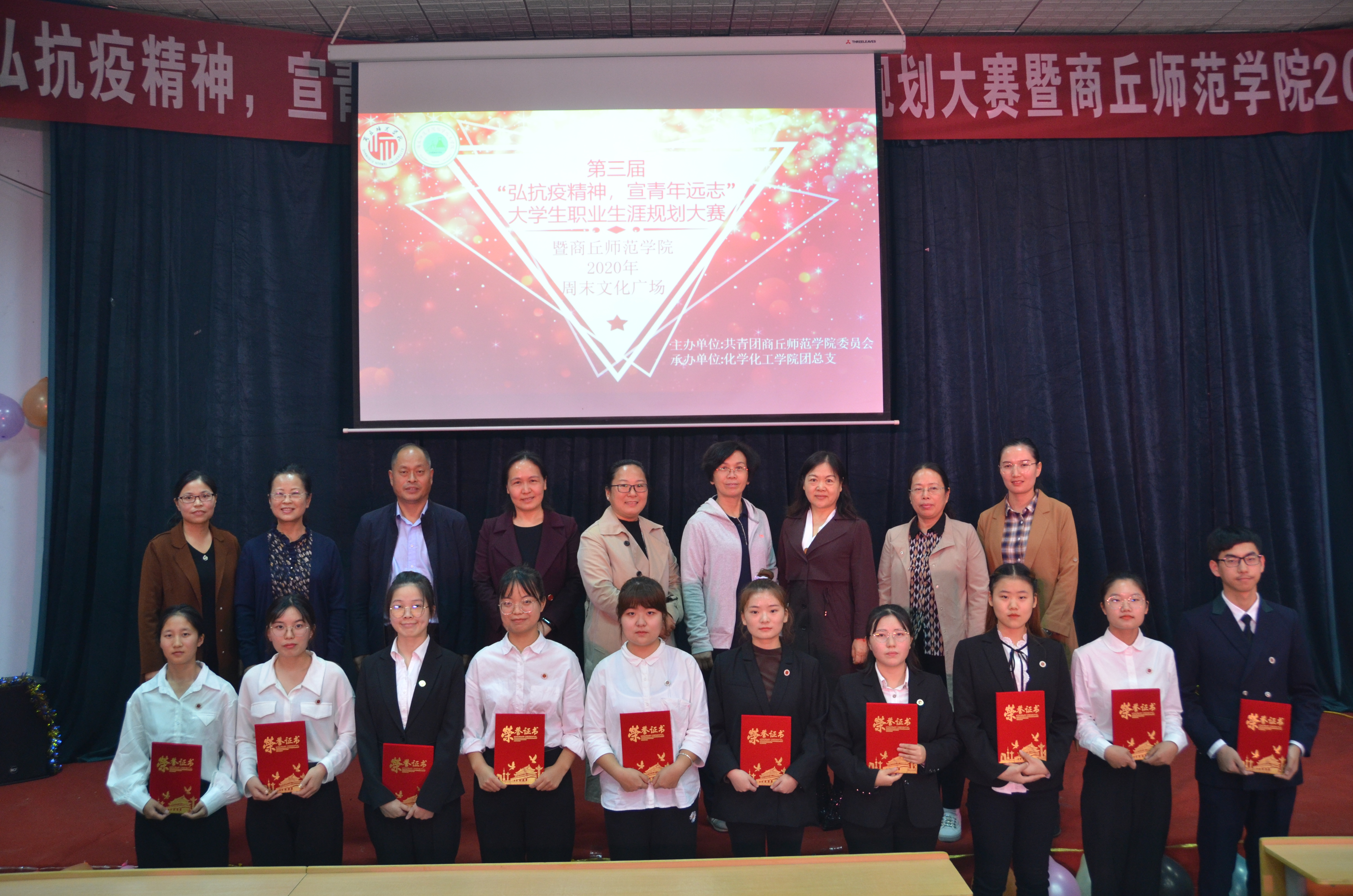 为使员工对未来职业走向和职业发展有更清晰的认识,10月9日下午,E8官网登录入口于睢阳校区物电报告厅举办了“第三届老员工职业规划大赛暨2020年E8官网登录入口周末文化广场”。莅临本次活动的评委老师有:人才招聘处副处长杨春风、E8官网登录入口团委副书记蒯秀丽、人文公司党总支副书记陈晓明、教师教育公司党总支副书记肖爱芝、数学与统计公司党总支副书记陈树艳、生物与食品公司党总支副书记史继红、公司党总支书记韩忠民、党总支副书记刘瑛。各年级辅导员、E8官网登录入口19级、20级员工参与。