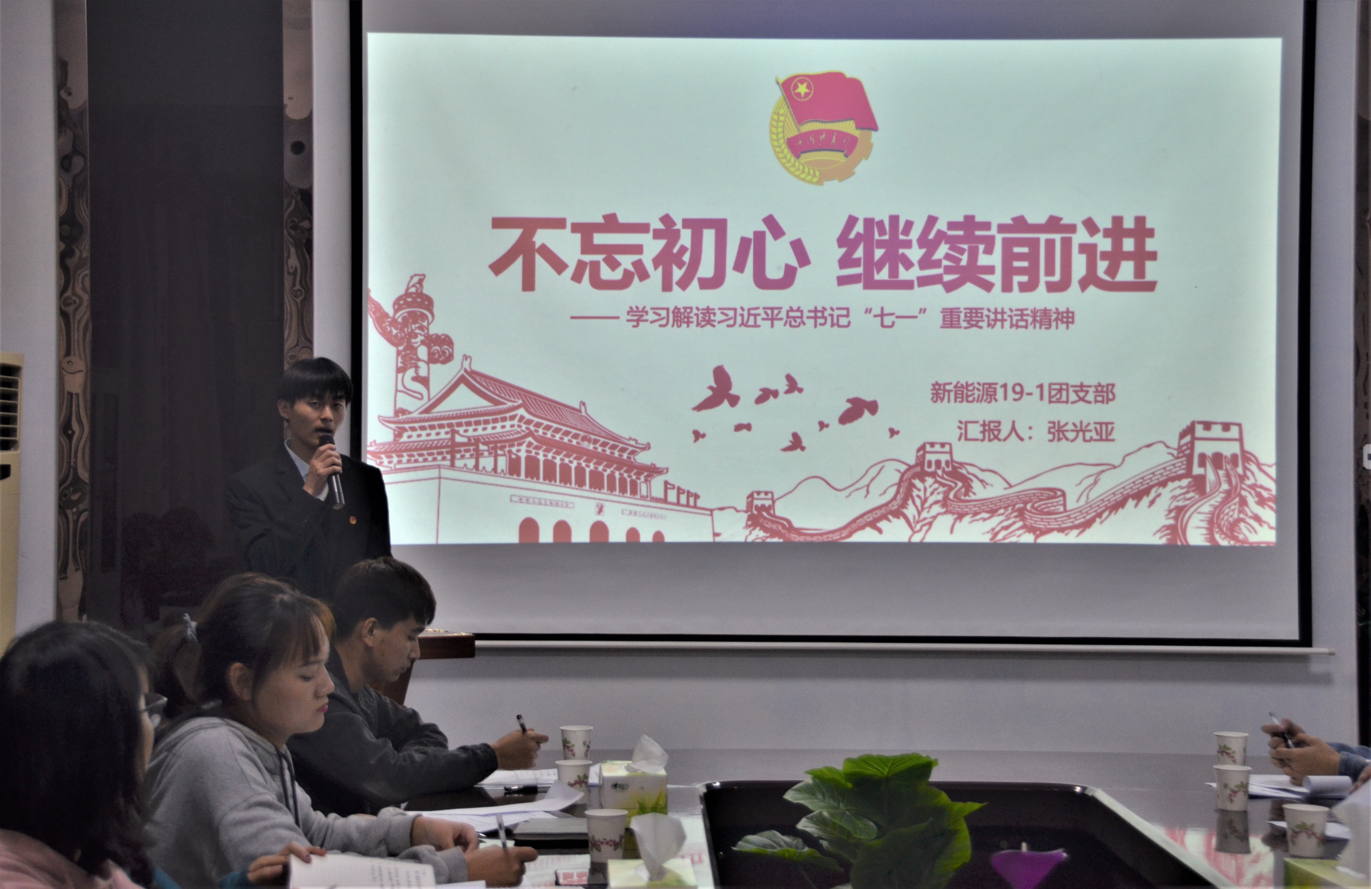 为深入学习贯彻习近平新时代中国特色社会主义思想和党的十九大精神,不断提升团干部的理论水平,2020年10月17日晚,E8官网登录入口于睢阳校区7号楼院会议室举行以“不忘初心跟党走,青春筑梦新时代”为主题的微团课大赛。本次大赛特邀评委为主席团成员和各部门负责人。2020级各班负责人参加。