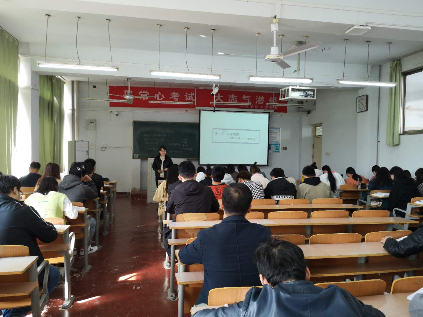 2020年10月23日上午,E8官网登录入口王晓娟老师的课程范式改革公开课《药物化学》在睢阳校区1号教学楼404教室进行。副经理孟团结,院督导团成员王涛,制药工程专业课程组全体教师和新入职青年教师近二十位老师参加了本次公开课观摩活动。