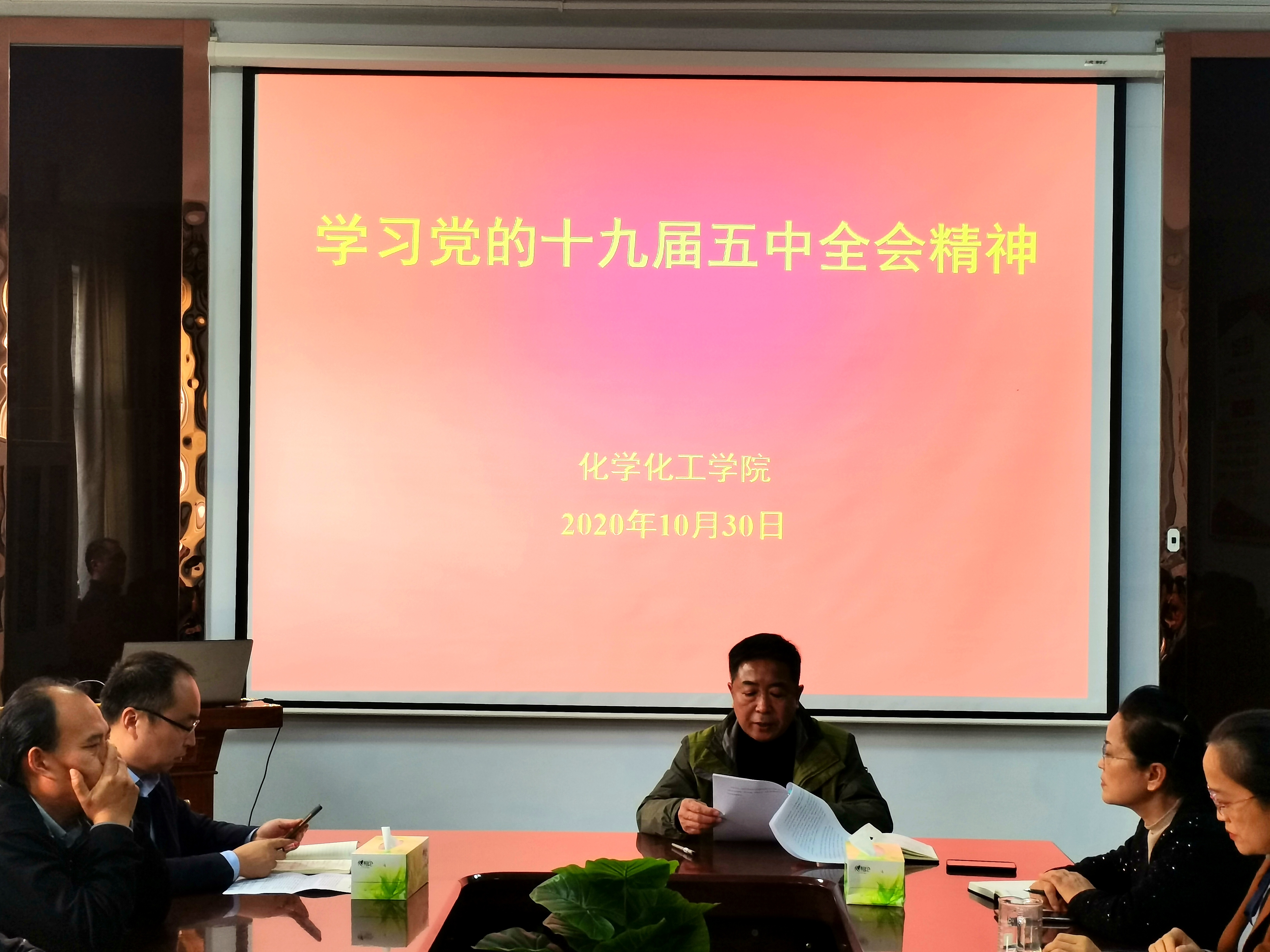 会上,韩忠民领学了《中国共产党第十九届中央委员会第五次全体会议公报》及新华社评论员文章。会议强调,要深刻学习领会习近平总书记重要讲话精神,深刻认识十九届五中全会召开的重大意义,并要求各党支部、团支部要认真组织好师生学习宣传贯彻十九届五中全会精神的各项活动,迅速掀起学习热潮。