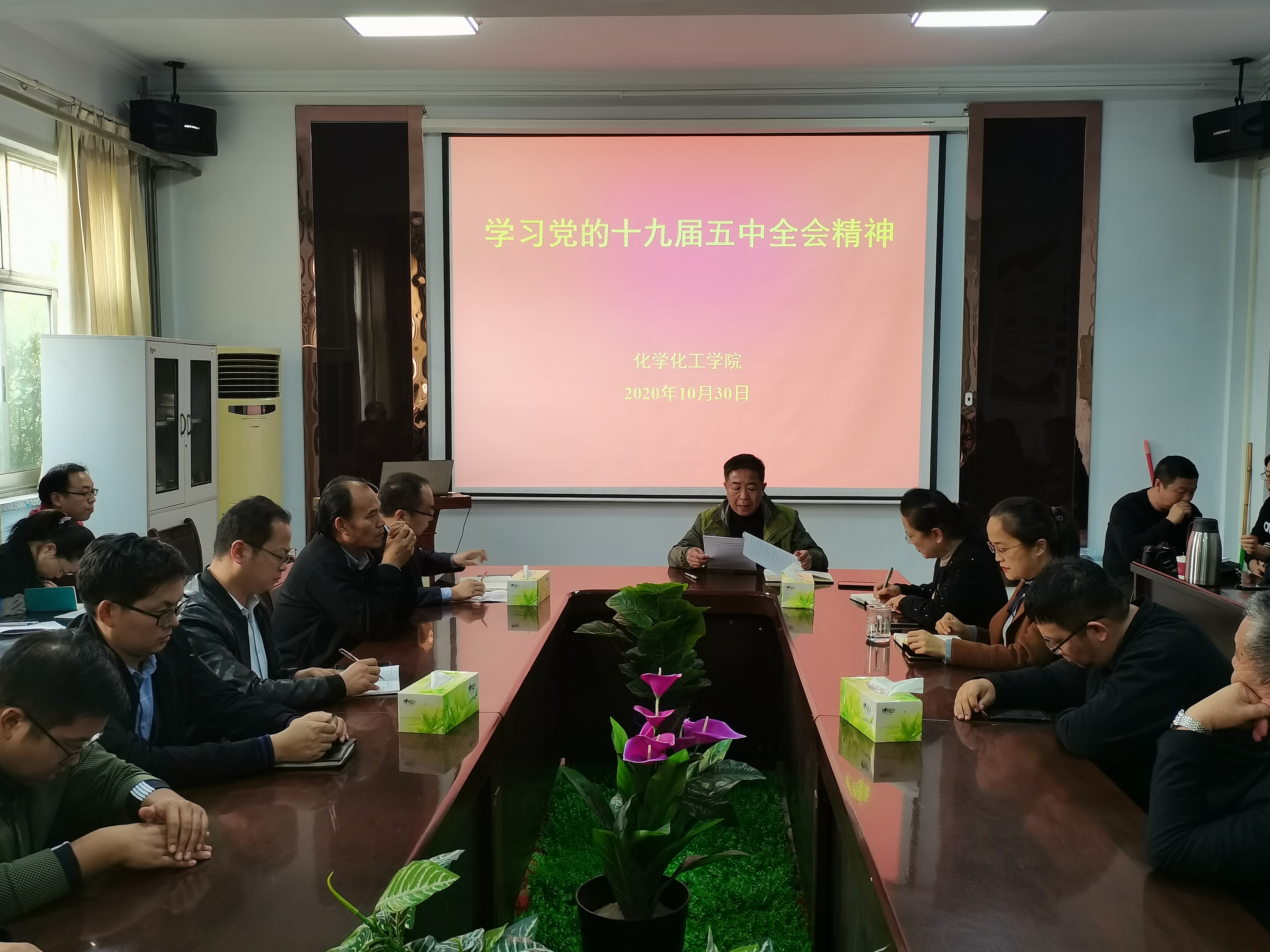 2020年10月30日,E8官网登录入口于睢阳校区7号楼公司会议室召开全体教职工会议,传达学习党的十九届五中全会精神,部署公司师生学习宣传贯彻工作。