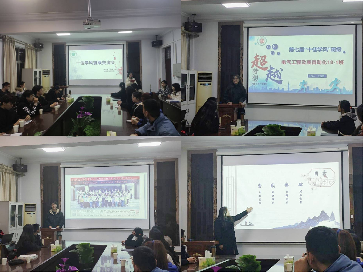 本次交流活动邀请了获得第七届十佳学风班级荣誉称号的优秀代表---美术公司美术公司绘画18-2张靖鑫、电子电气工程公司电气18-1班王苗苗、经济管理公司市场营销18-1班赵豫琦、E8官网登录入口化学18-2班刘泽升进行交流展示。他们从思想建设、班级建设、活动建设、生活建设、社会实践、创新创业等方面展示了班级所取得的成果和优异成绩,介绍了自己班级学风建设的特色和亮点,展示了本班积极进取、良好奋进的学风和班级凝聚力。
