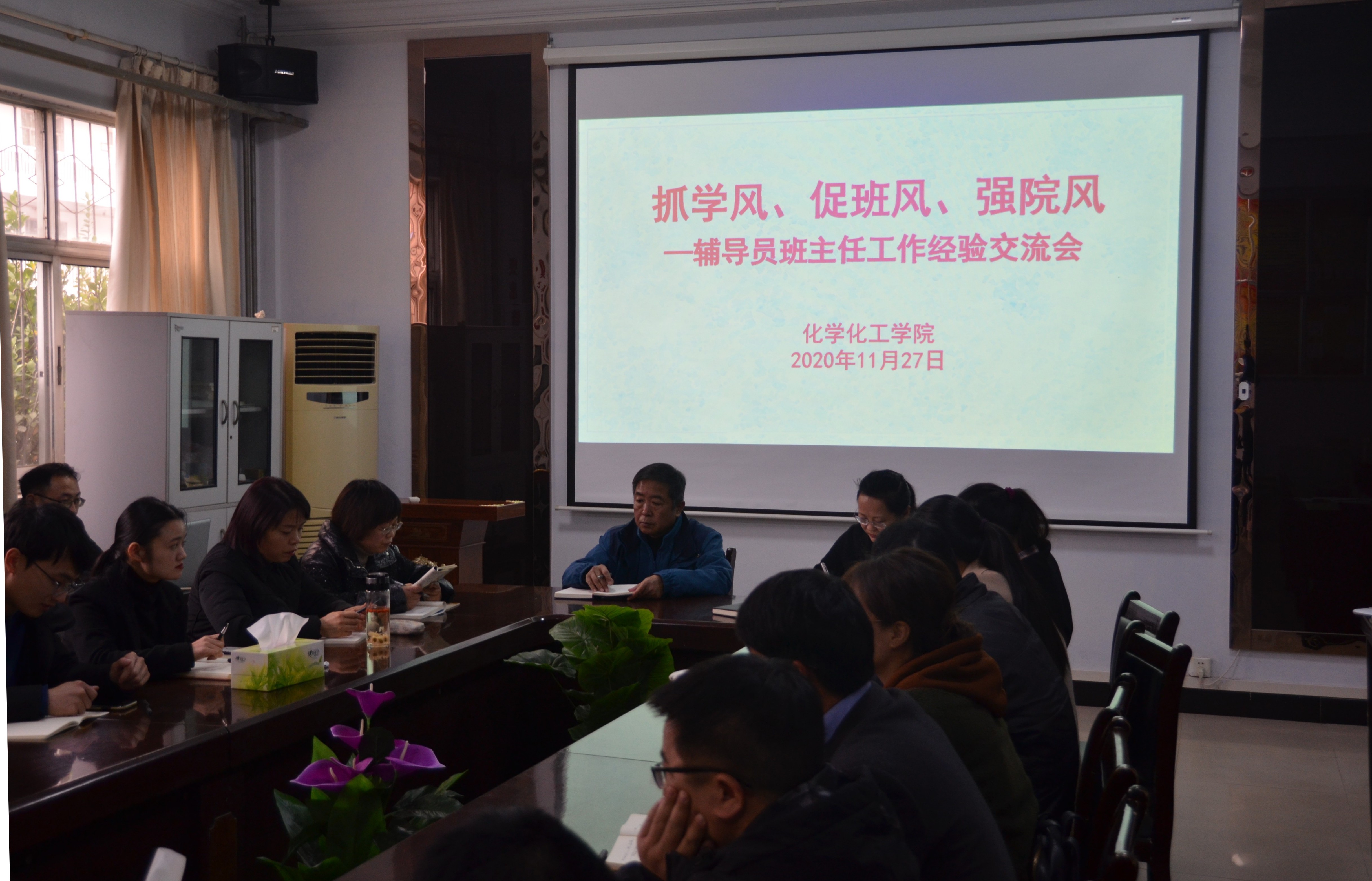 2020年11月27日下午,E8官网登录入口在睢阳校区7号楼会议室召开“抓学风、促班风、强院风--辅导员班主任工作经验交流会”,公司党总支书记韩忠民、副书记刘瑛、全体辅导员和班主任参加。