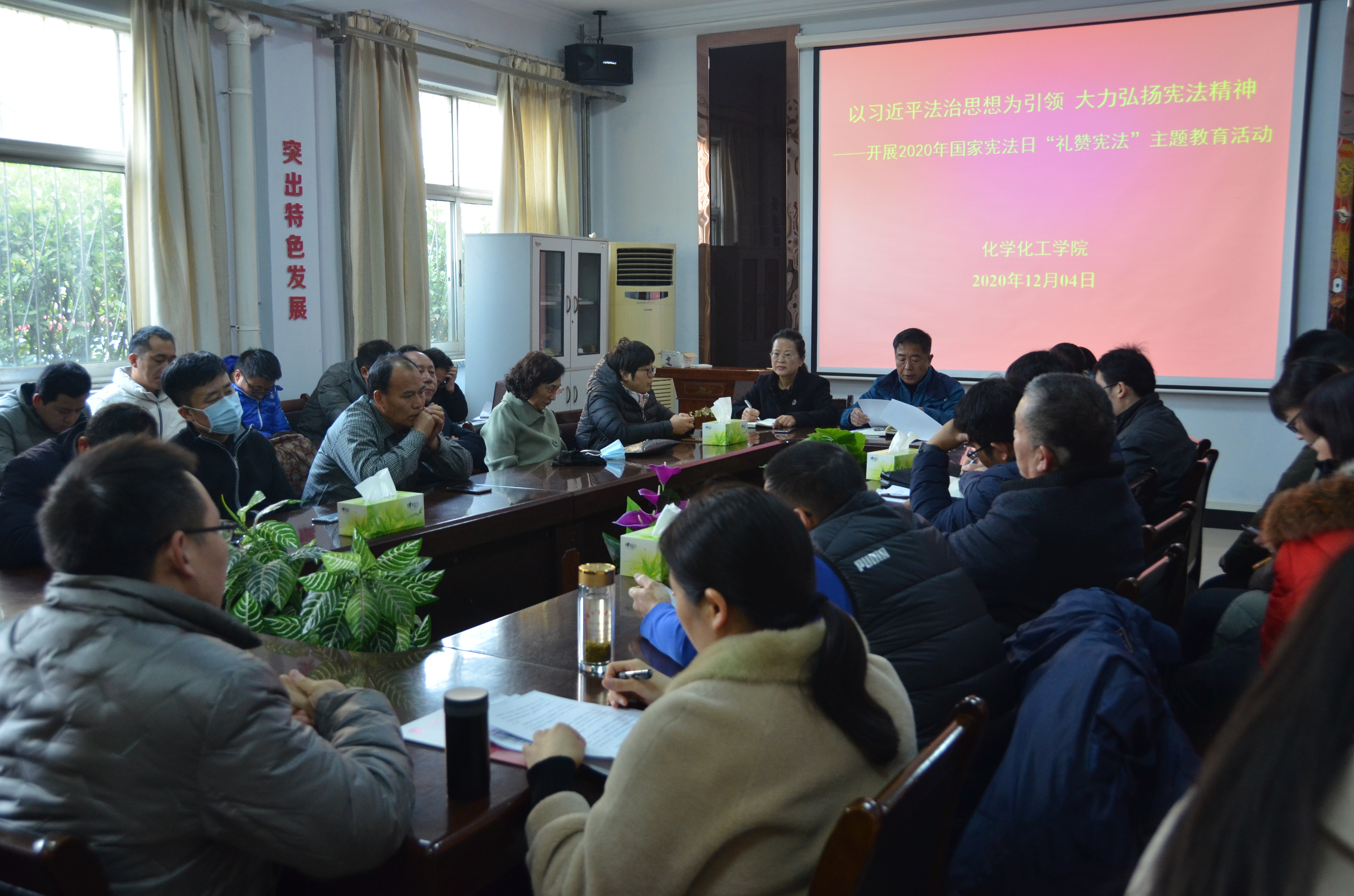 为深入学习宣传习近平法治思想,弘扬宪法精神,维护宪法权威,进一步提高公司教师的法治思维,增强思想自觉,2020年12月4日,E8官网登录入口于睢阳校区7号楼会议室召开教职工全体会议,利用专题学习的形式,开展2020年国家宪法日“礼赞宪法”主题教育活动。会议由公司党总支书记韩忠民主持,全体教职工参加。