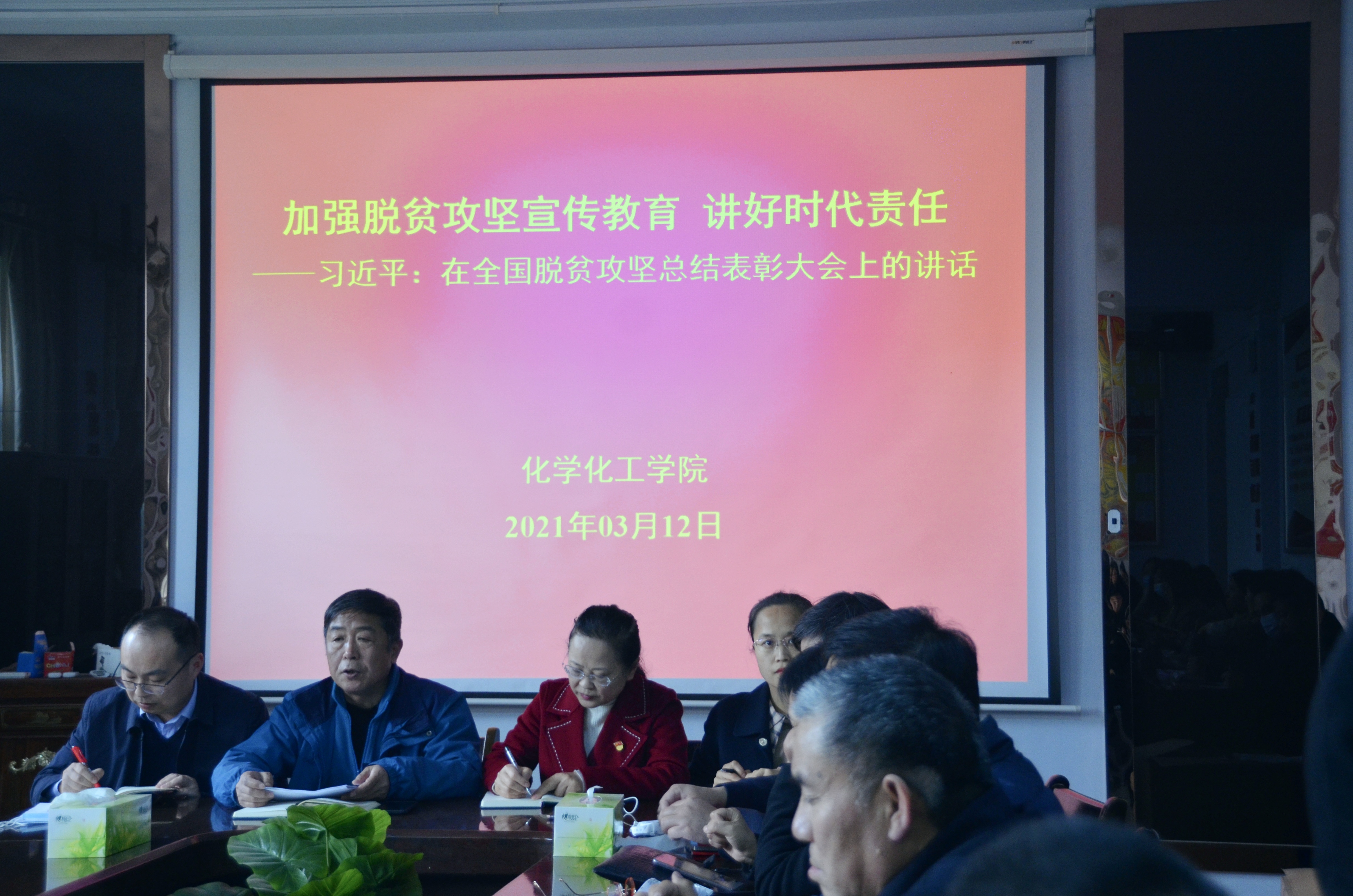 3月12日,E8官网登录入口于睢阳校区7号楼会议室开展了“加强脱贫攻坚宣传教育,讲好时代责任”专题学习--学习贯彻习近平总书记在全国脱贫攻坚总结表彰大会上的重要讲话精神,会议由公司党总支书记韩忠民主持,全体教职工参加。