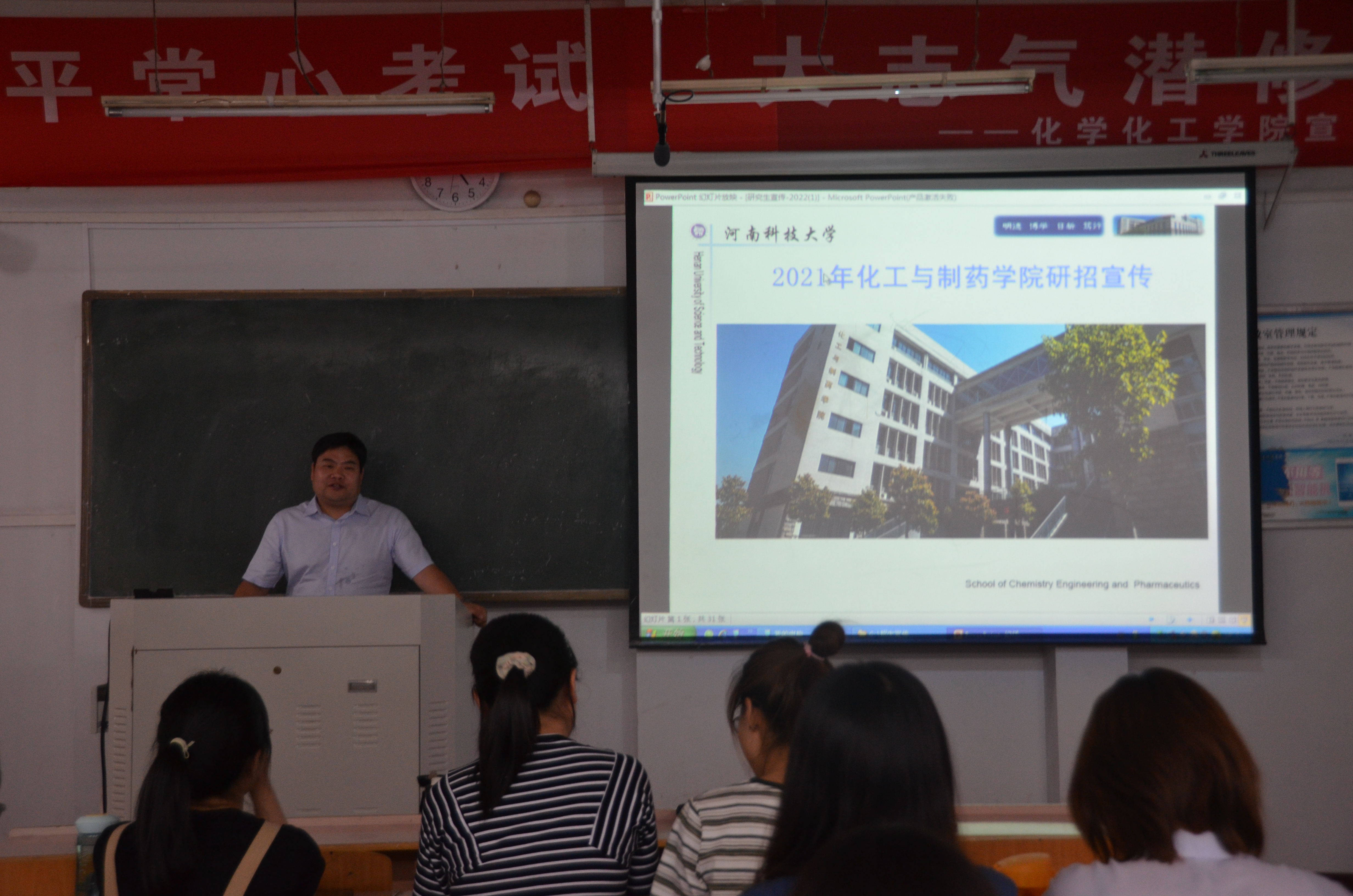 宣讲会上,李军波向同学们详细地介绍了河南科技大学化工与制药公司,公司团队力量雄厚,拥有强大的博士团队,积极开展国际交流合作,形成了科研资源共享、人才联合培养的良好局面。其次就公司研究生招生政策、招生专业、培养条件、员工就业等情况进行全面宣讲,并对公司员工在备考时应该注意的问题提供了辅导和培训。