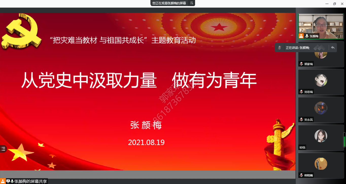 为进一步巩固“把灾难当教材,与祖国共成长”主题教育活动成果,持续把疫情灾情危机化为教育契机,不断增强思想政治教育的针对性、实效性,8月19日,公司党委副书记张颜梅为全体党员、入党积极分子举办“从党史中汲取力量 做有为青年”专题党课。