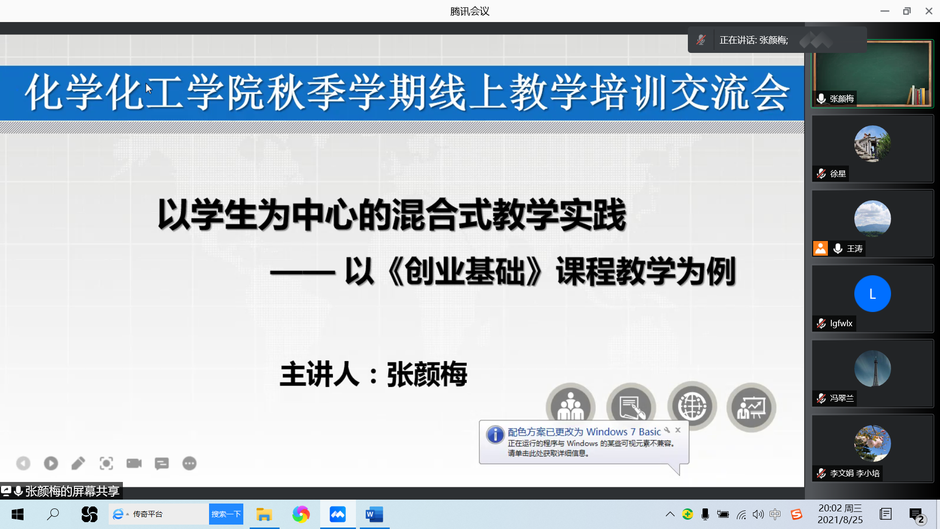 会上,公司范式改革课程结项负责人、河南省一流本科课程负责人分别从如何上好开学第一课、教学资源准备、在线课程建设、混合式教学过程设计、作业布置与批改、课程思政、员工在线学习数据跟踪等方面进行分享。随后,大家针对上述议题进行了讨论和互动,尤其是针对线上线下教学如何融合、教学过程如何设计、直播教学过程中可能出现的问题如何应对等进行了研讨和互动交流。