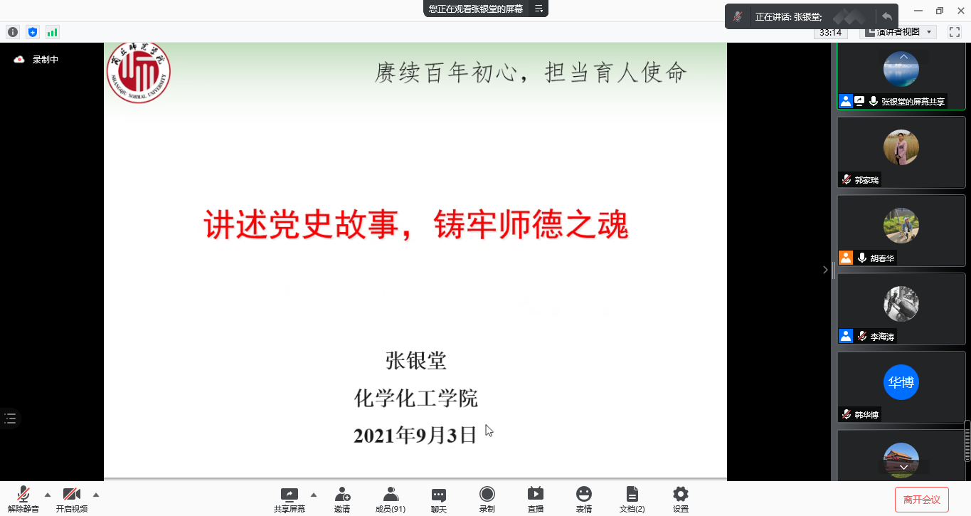 9月3日,公司开展了“赓续百年初心,担当育人使命”2021年教师节庆祝活动,经理张银堂以“讲述党史故事,筑牢师德之魂”为题做了师德师风专题报告,公司党委书记李海涛主持报告会。