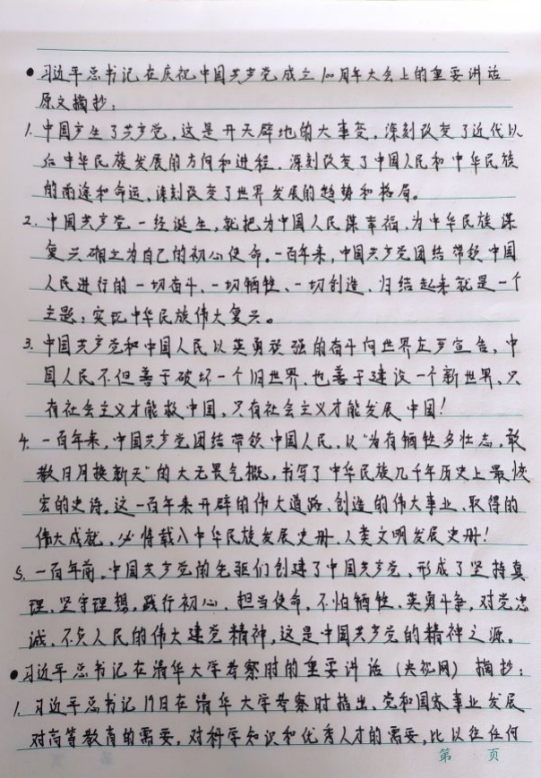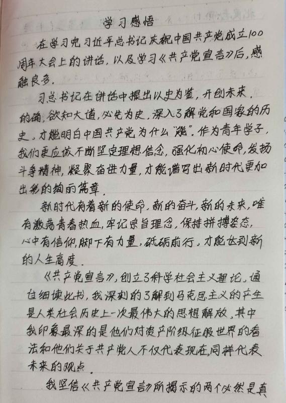 同学们在学习习近平总书记在庆祝中国共产党成立100周年大会上的重要讲话、党章、团章、《共产党宣言》、《论中国共产党历史》、《习近平新时代中国特色社会主义思想学习问答》、习近平总书记在清华大学考察时的重要讲话等学习资料的过程中,都有自己独特的感悟和见解,并且认真做了笔记,下面一起来看看优秀笔记展示吧。