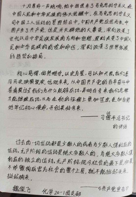 化学20-1团支部魏俊飞