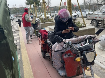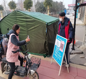 1月14号,根据要求李聪聪被分配在郑州中牟广惠街街道桃村疫情监测点进行心理疏导,进行登记村里出入人员、值勤、测量体温等工作,并协助其他防疫员张贴防疫宣传标语,警示图。他积极热情,工作认真细致,并做好疫情防控的值班值守工作,认真完成对人行入口和车行入口都要加强扫码、验码、测温、戴口罩的要求,如果没有口罩,李聪聪就会送他一个,并要求进入车辆车上的所有人员都要扫码、验码。